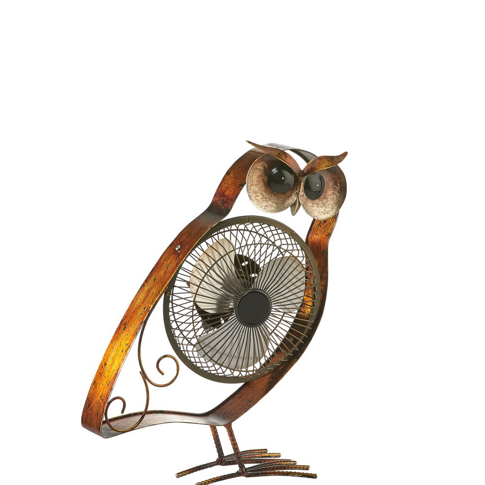 | Plug this cute little fan into your computer with the USB connector or use the adapter to plug into a standard outlet. The fan tilts giving you the ability to adjust the angle of the airflow. Easy on/off switch. The aluminum fan blades of this owl - which features its big, wise eyes and bushy eyebrows - produce a strong airflow without making a lot of noise. And, it consumes just 2.5W of power per hour, 95% less than traditional AC fans. Be as wise as an owl; cool down! Measures: 14" High x 12" Wide x 4.5" Deep Single Speed 6" USB Fan - single speed, 5 Volt DC motor Handcrafted & Painted Metal 3 year limited manufacturer warranty Figurine Fans |