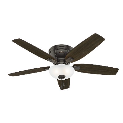 | Casual Ceiling Fan. For indoor use only. 5 Reversible Barnwood/Dark Walnut Fan Blades Included. 13 Blade Pitch Light kit features Cased White Bowl fixture. Includes 3 9W LED Bulbs. You will love the dimmable light feature. 3 speeds controlled by pull chain. Low profile ceiling fan mounts flush to the ceiling. Limited Lifetime Motor Warranty is backed by the only company with over 125 years in the fan business WhisperWind® motor delivers ultra-powerful air movement with whisper-quiet performance so you get the cooling power you want without the noise you don't Reversible motor allows you to change the direction of your fan for the seasons. Overall Height: 0 in Blade Span: 52" Large Room |