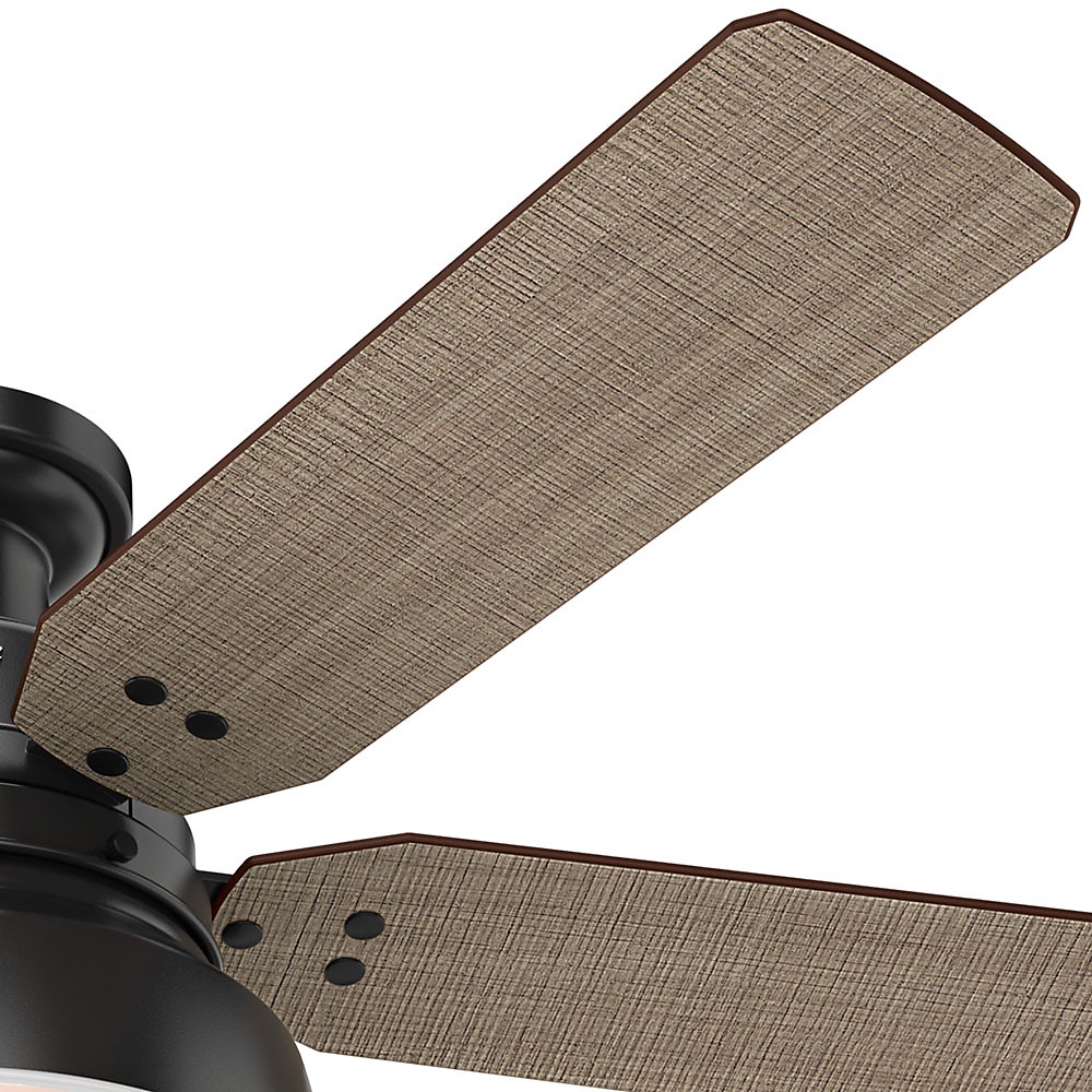 | Casual Ceiling Fan. ETL Damp-rated for use in covered porches, patios and sunrooms. 5 Reversible Walnut Stripe/Medium Walnut Fan Blades Included. 13 Blade Pitch Light kit features none Integrated fixture. Includes 1 4.5W LED Bulbs. You will love the dimmable light feature. 3 speeds controlled by pull chain. Low profile ceiling fan mounts flush to the ceiling. Limited Lifetime Motor Warranty is backed by the only company with over 125 years in the fan business WhisperWind® motor delivers ultra-powerful air movement with whisper-quiet performance so you get the cooling power you want without the noise you don't Reversible motor allows you to change the direction of your fan for the seasons. Overall Height: 0 in Blade Span: 52" Large Room |