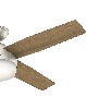 | Contemporary Ceiling Fan. ETL Damp-rated for use in covered porches, patios and sunrooms. 4 Reversible Matte Nickel/Walnut Fan Blades Included. 13 Blade Pitch Light kit features Cased White Integrated fixture. Includes 2 9.8W LED Bulbs. You will love the dimmable light feature. 3 speeds controlled by Handheld Remote. Three-position mounting system allows installation for angled, flush or standard with the included 2" and 3" downrods. Limited Lifetime Motor Warranty is backed by the only company with over 125 years in the fan business WhisperWind® motor delivers ultra-powerful air movement with whisper-quiet performance so you get the cooling power you want without the noise you don't Reversible motor allows you to change the direction of your fan for the seasons. Overall Height: 9.43 in Blade Span: 52" Large Room |