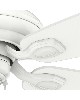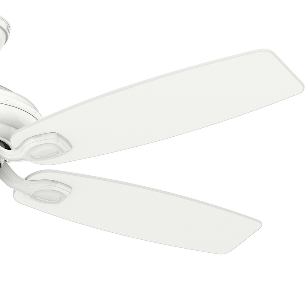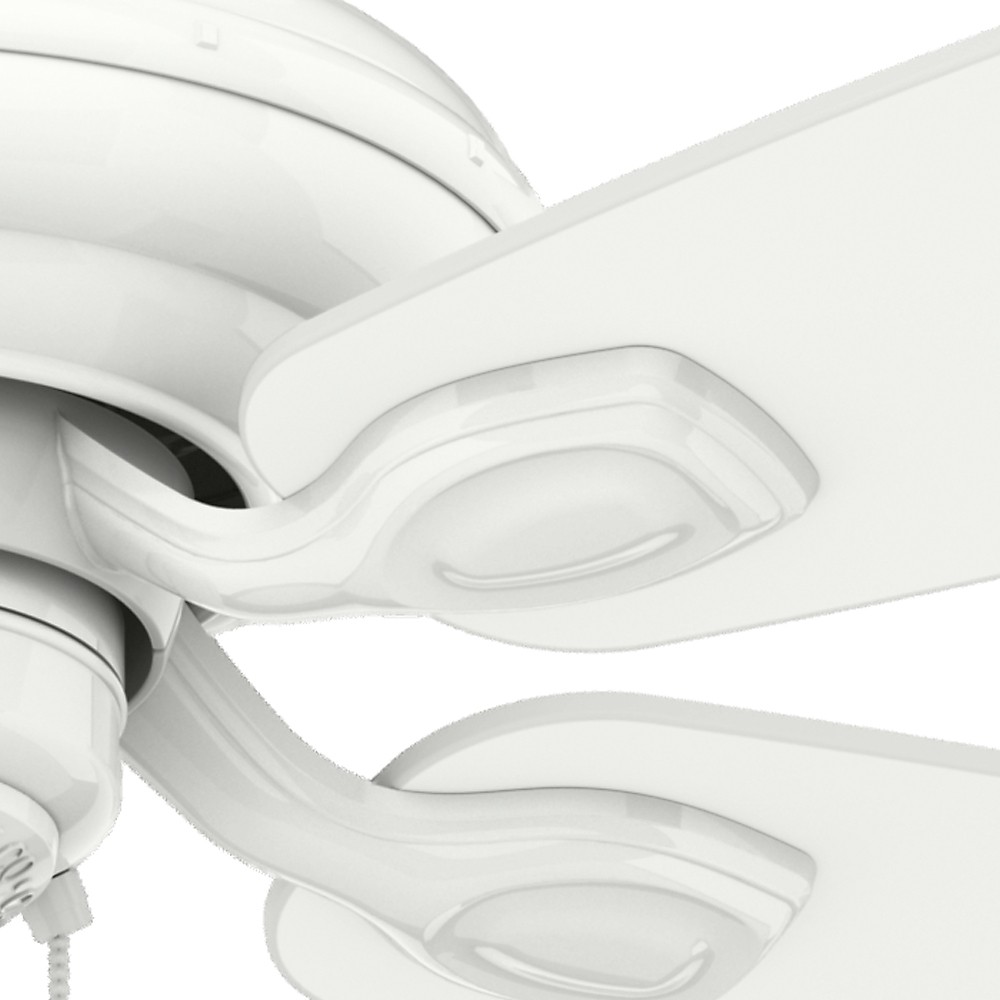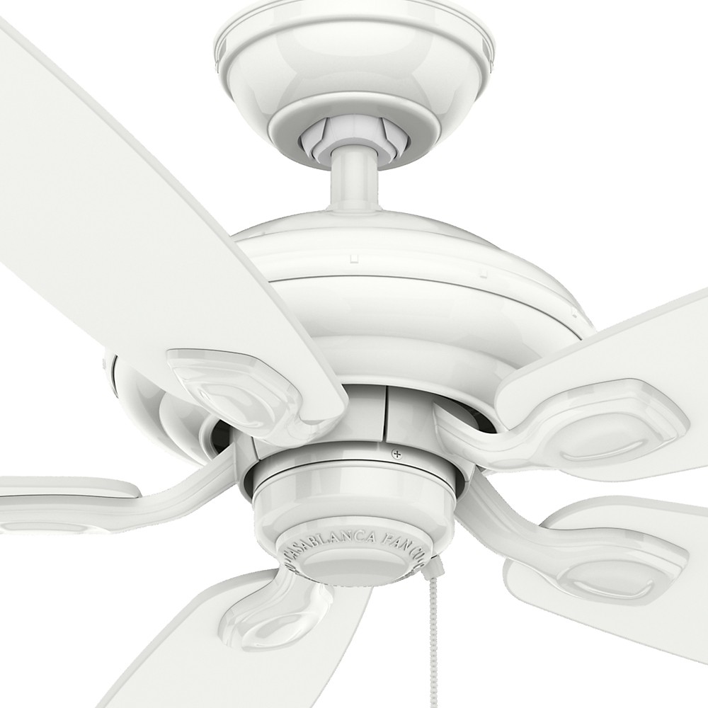 5 Matte Snow White Fan Blades Included. 13 Blade Pitch. 4 speeds controlled by pull chain. Three-position mounting system allows installation for angled, flush or standard with the included 2" and 3" downrods.