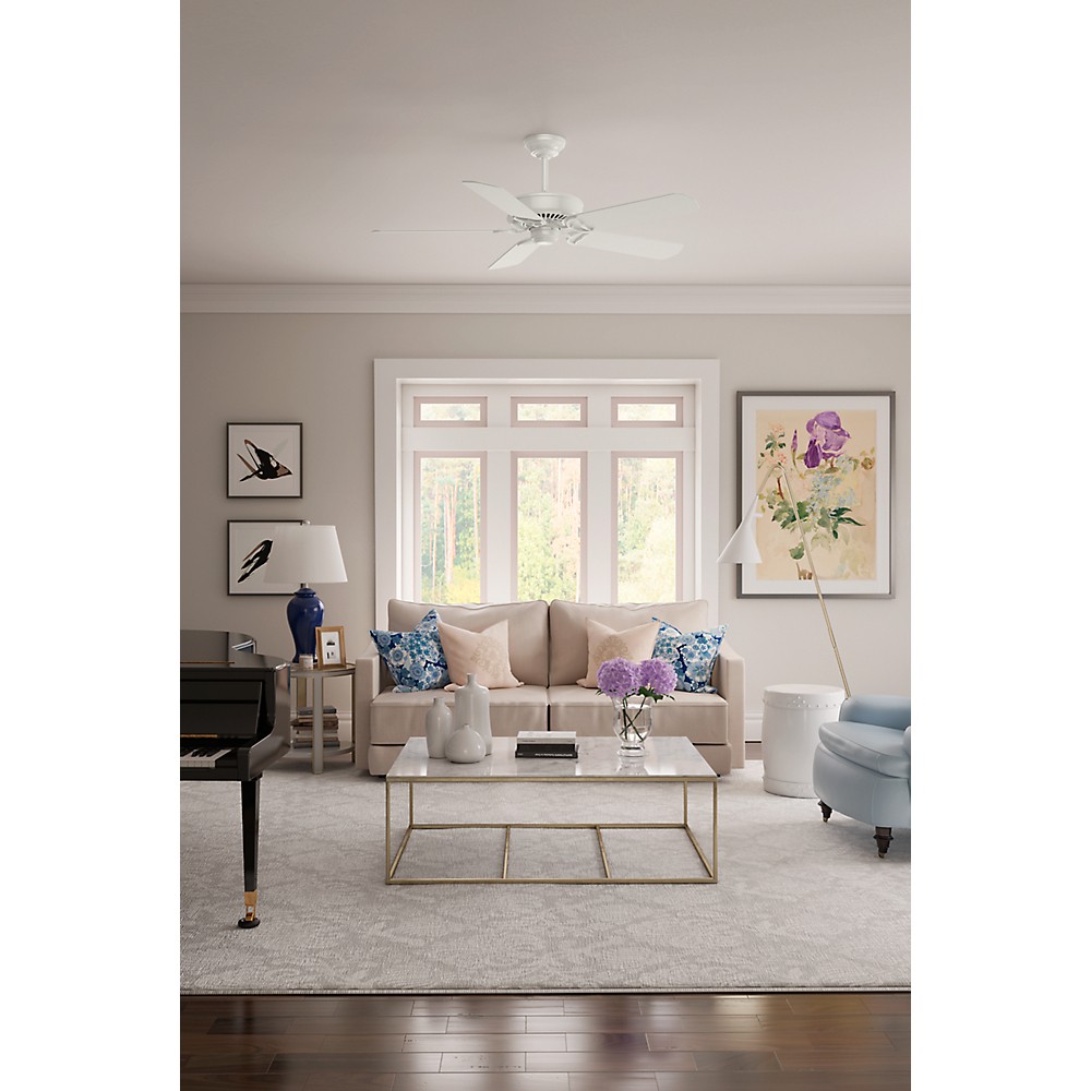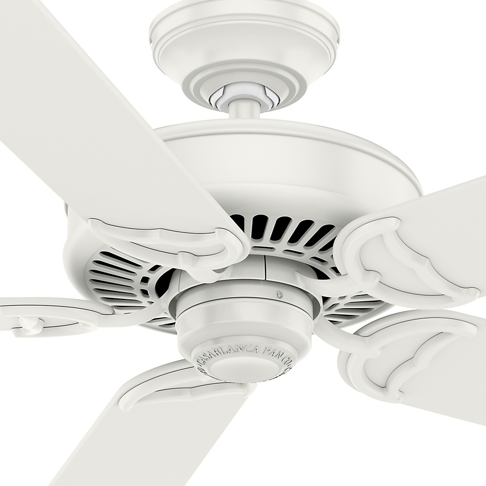 | Traditional Ceiling Fan. For indoor use only. 5 Reversible Fresh White/Rustic Oak Fan Blades Included. 13 Blade Pitch. 4 speeds controlled by Wall Control. Three-position mounting system allows installation for angled, flush or standard with the included 2" and 3" downrods. High-end motor is ENERGY STAR® certified and at the top of its class in air movement Casablanca's Comprehensive Warranty includes a lifetime motor warranty, one-year parts and electronics warranty, and 120-day in-home service Direct Drive™ motor provides unparalleled power, silent performance, and reliability over decades of daily use Reversible motor allows you to change the direction of your fan for the seasons. Overall Height: 10.98 in Blade Span: 54" Large Room |