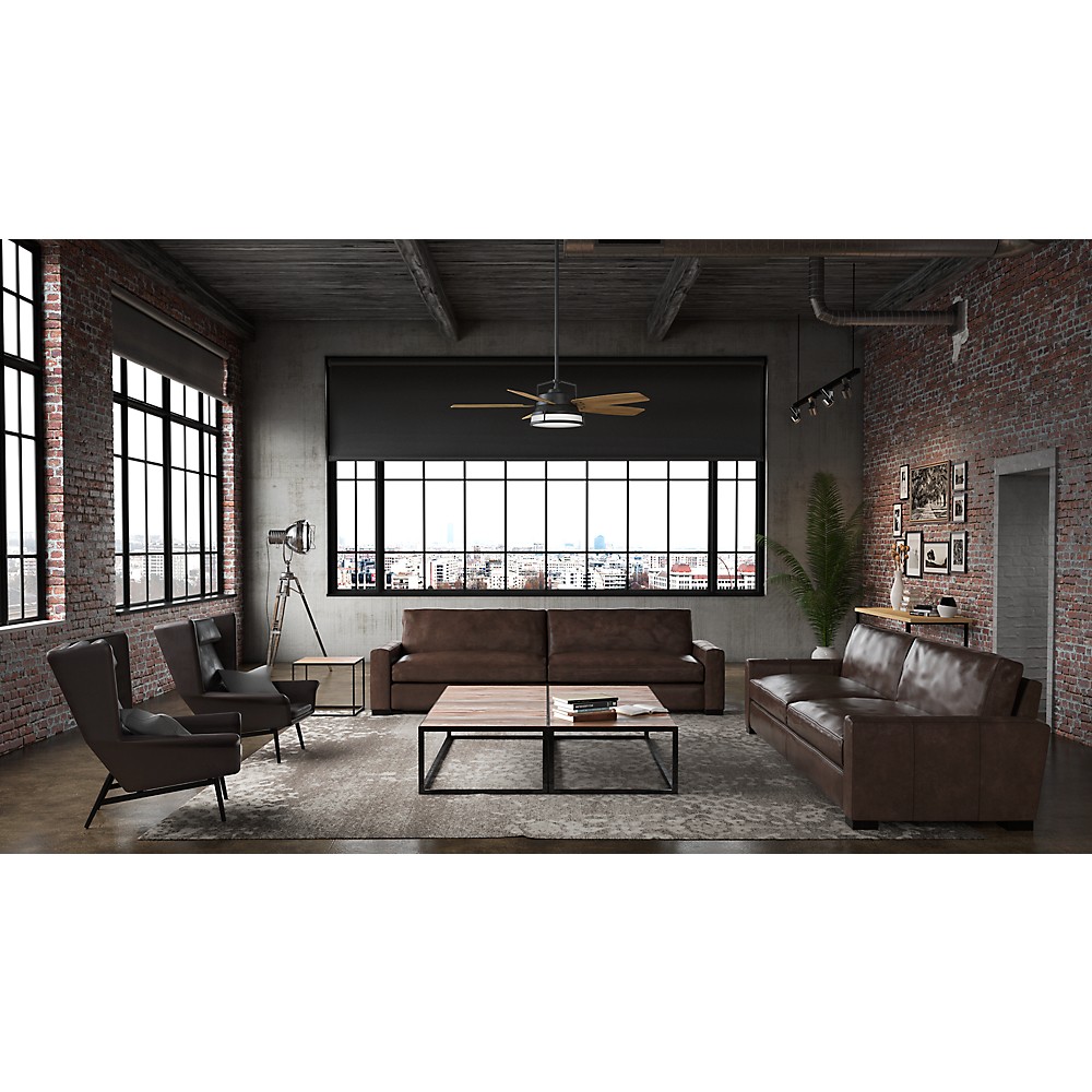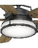 | Transitional Outdoor Ceiling Fan. ETL Damp-rated for use in covered porches, patios and sunrooms. 5 White Washed Oak Fan Blades Included. 13 Blade Pitch. Light kit features Cased White Integrated fixture. Includes 3 9.8W LED Bulbs. You will love the dimmable light feature. 4 speeds controlled by Wall Control. Three-position mounting system allows installation for angled, flush or standard with the included 2" and 3" downrods. Casablanca's Comprehensive Warranty includes a lifetime motor warranty, one-year parts and electronics warranty, and 120-day in-home service Direct Drive™ motor provides unparalleled power, silent performance, and reliability over decades of daily use Reversible motor allows you to change the direction of your fan for the seasons. Overall Height: 13.04 in Blade Span: 56" Great Room |