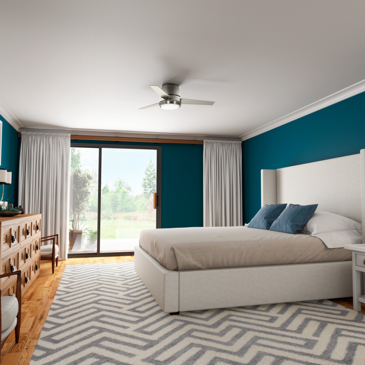 | The Commodus modern ceiling fan with light touts a transitional design making it a unique ceiling fan for contemporary and casual room styles. The 10.5-inch compact ultra-low-profile design makes the Commodus ideal for rooms with low ceilings. It fits flush to the ceiling to deliver powerful air performance without sacrificing style or space in rooms with low ceilings. This 44-inch small ceiling fan is perfect for bedrooms living rooms fitness rooms and dining rooms. The performance ceiling fan blades are optimized for efficient air movement. The Commodus fan features a preinstalled remote receiver for easy installation an LED light module and a wall control for fan speed and lighting adjustments. Modern 3 Matte Nickel blades included Light kit features Painted Cased White Hunter Small (2) Int LED | Foxconn 24 W | K8233-08 Includes 1 24W LED Module Bulbs. You will love the dimmable light feature. 4 speeds controlled by Integrated Control System - Wall Control. Specially designed low-profile housing fits flush to the ceiling making it ideal for use in rooms with low ceilings less than 9' " Limited Lifetime Motor Warranty Reversible 4-speed WhisperWind® motor delivers ultra-powerful air movement with whisper-quiet performance so you get the cooling power you want without the noise you don't® Overall Height: 7.82 in Airflow: 3553 CFM Electricity Use: 35 WATTS Airflow Efficeincy: 74 CFM/WATT |