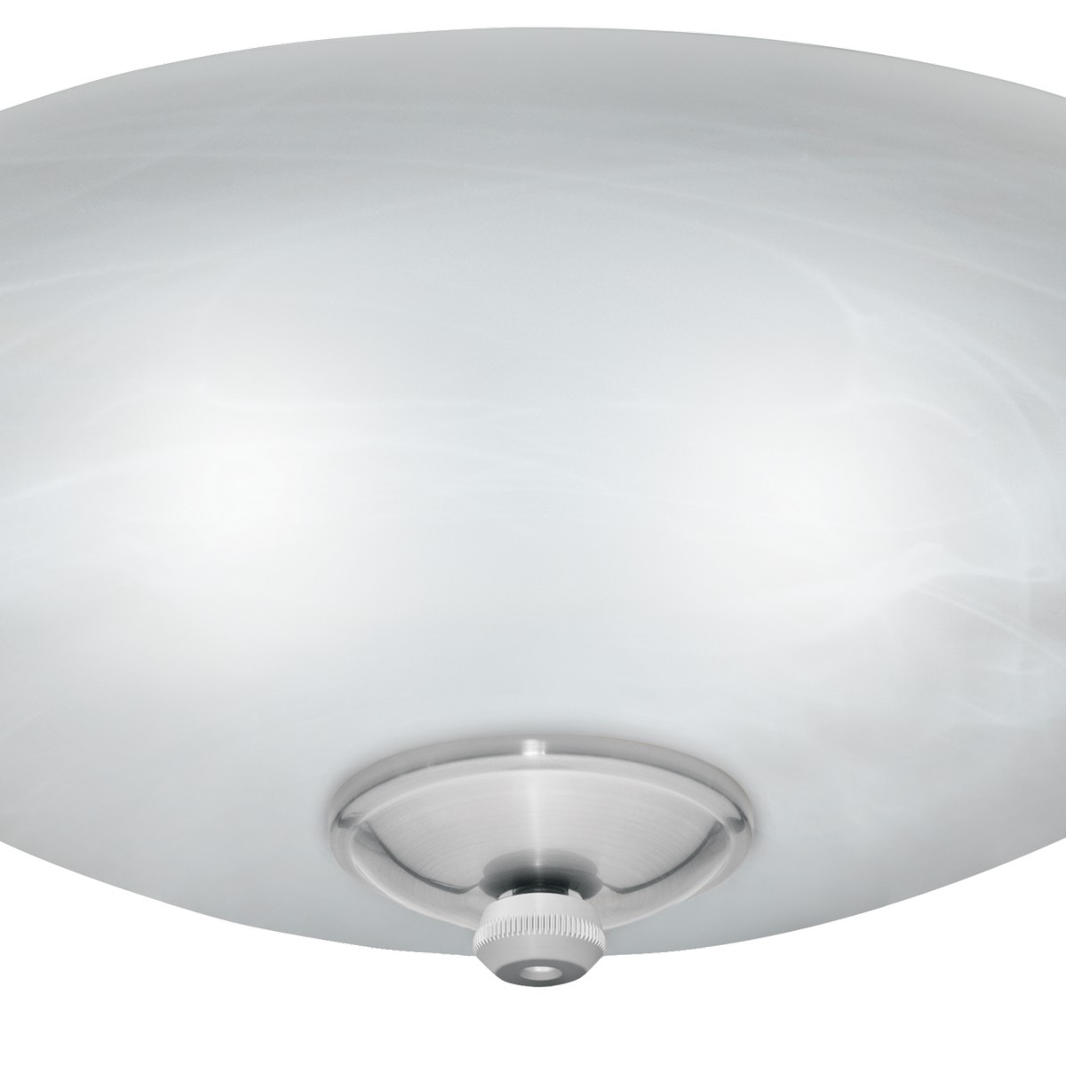 Low profile sleek design Swirled Marble glass Uses 3 CFL bulbs for energy efficient quality light output Damp Rated