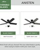 | Refresh your home with the Anisten Ceiling Fan an epitome of modern aesthetics. Its streamlined contemporary design blends seamlessly into modern settings infusing both flair and functionality. Equipped with a reversible 4-speed DC motor it provides efficient and adaptable airflow for year-round comfort. The Anisten is more than just a fan – it's a fusion of sophisticated style and cutting-edge technology enhancing your space with every turn. Modern 5 Matte Black / Dark Gray Oak reversible blades included Light kit features White Lens A15 LED Bulb | 600lm (Non-Dim) | Longstar | 7W | KA305-01 Includes 2 7W LED Bulbs. 4 speeds controlled by pull chain. Installer's Choice® three-position mounting system allows for standard low or angled mounting Includes 3'' downrod to ensure proper distance from the ceiling and optimize air movement" Yes Limited Lifetime Motor Warranty 4-speed EcoWhisper DC Overall Height: 9.44 in Airflow: 3247 CFM Electricity Use: 9 WATTS Airflow Efficeincy: 251 CFM/WATT |
