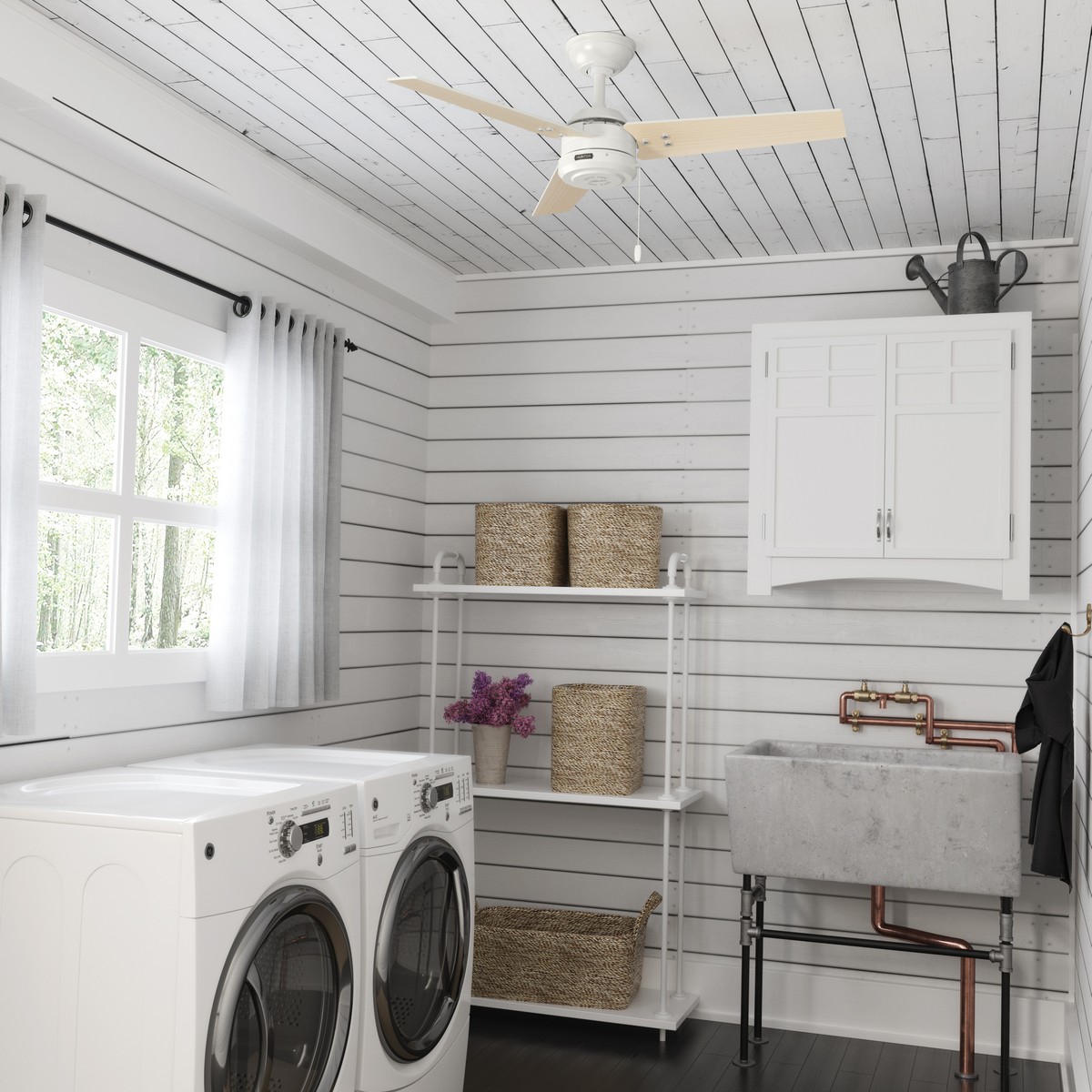 Hunter 44 inch Cassius Fresh White Damp Rated Ceiling Fan and Pull Chain