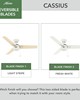 | The Cassius outdoor ceiling fan is damp-rated and able to withstand moisture and humidity perfect for covered patios and porches. This ceiling fan's clean lines and exposed hardware complement modern industrial and farmhouse-style indoor spaces as well. The 44-inch blade span on this small ceiling fan is the ideal fit for guest bedrooms home offices and small living rooms. Casual Industrial Modern Transitional 3 Light Stripe / Fresh White reversible blades included 3 speeds controlled by pull chain. Installer's Choice® three-position mounting system allows for standard low or angled mounting Includes 3'' downrod to ensure proper distance from the ceiling and optimize air movement" Limited Lifetime Motor Warranty Reversible 3-speed WhisperWind® motor delivers ultra-powerful air movement with whisper-quiet performance so you get the cooling power you want without the noise you don't® Overall Height: 8.76 in Airflow: 3096 CFM Electricity Use: 36 WATTS Airflow Efficeincy: 49 CFM/WATT |