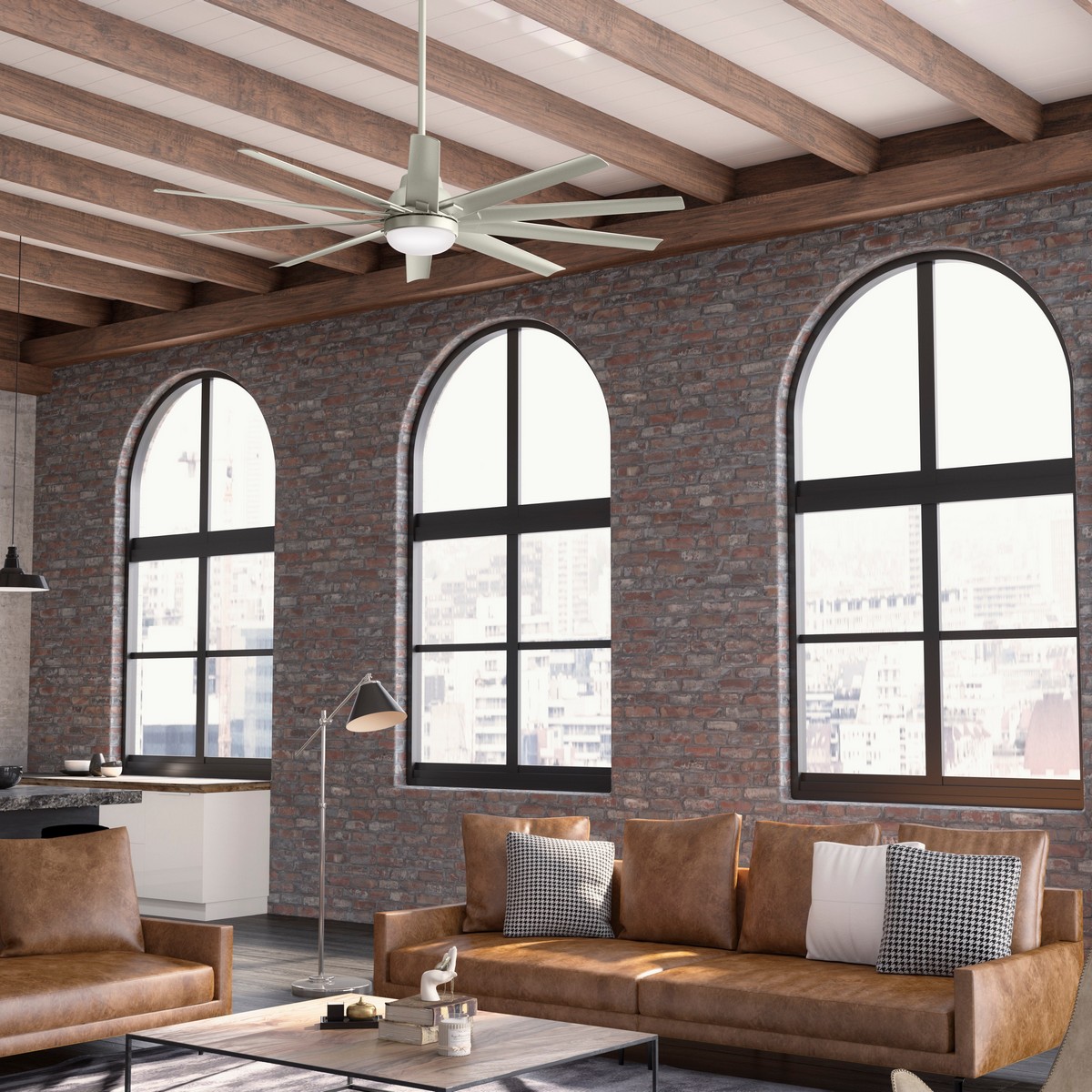 Hunter 72 inch Overton ENERGY STAR® Matte Nickel Damp Rated Ceiling Fan with LED Light Kit and Wall