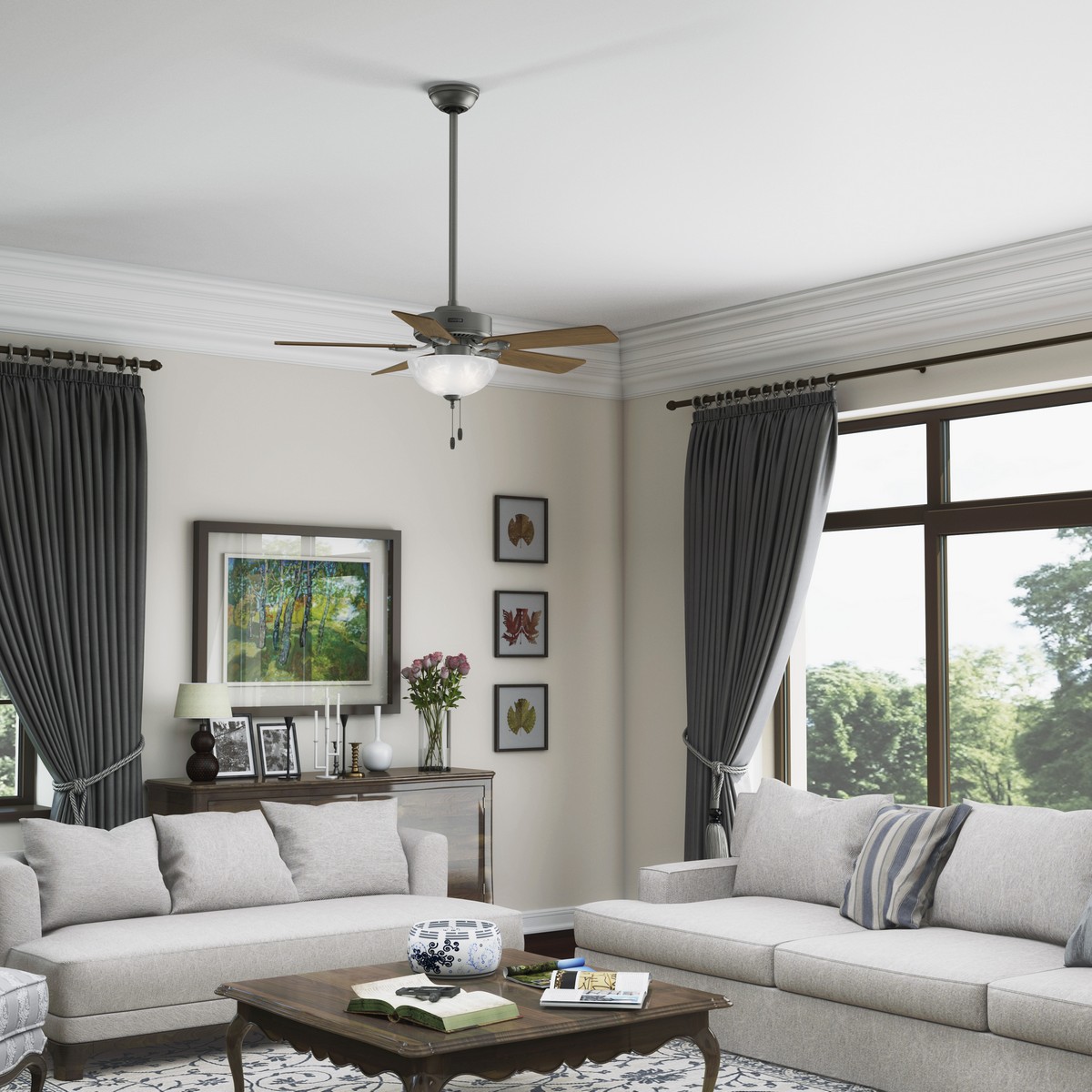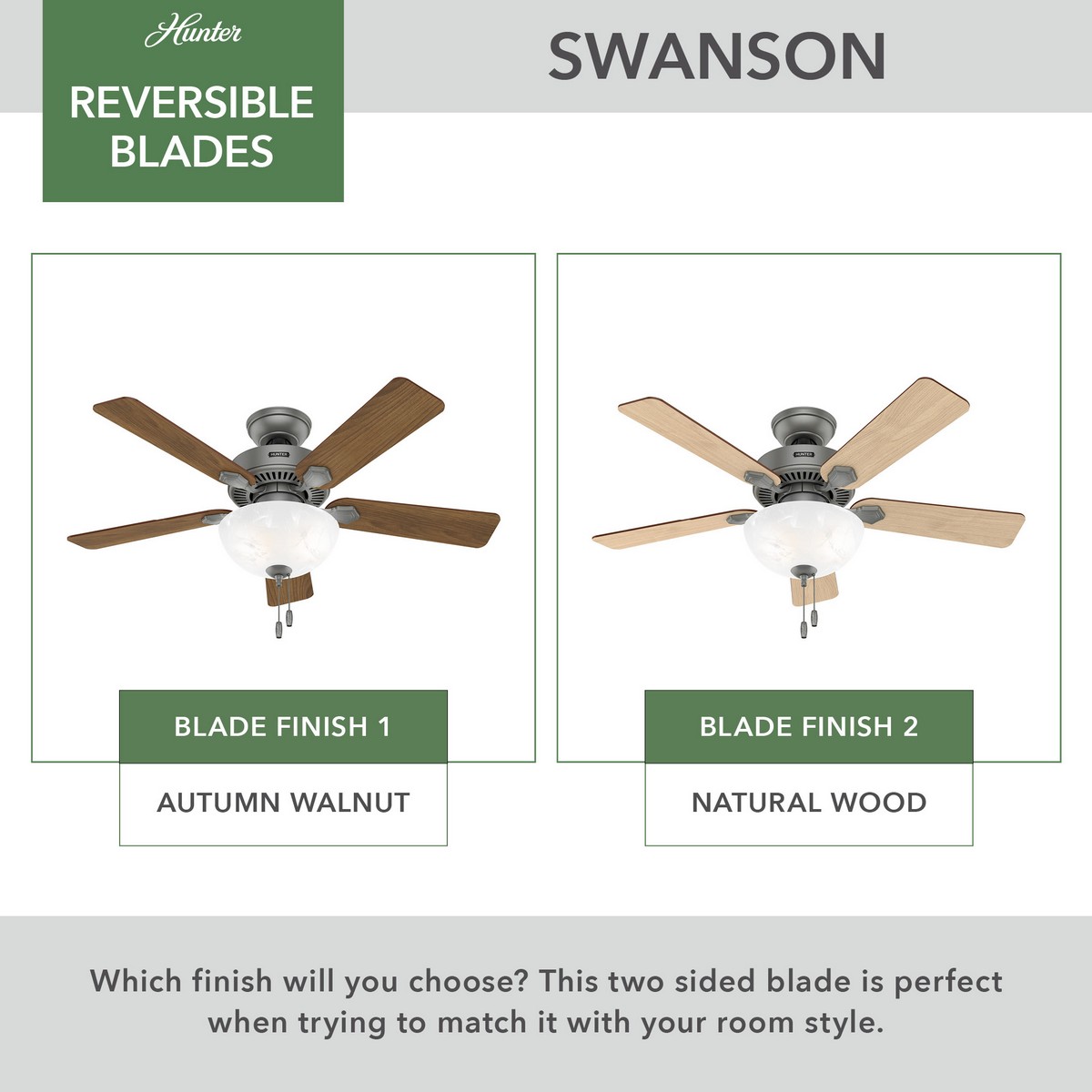 Hunter 44 inch Swanson ENERGY STAR® Matte Silver Ceiling Fan with LED Light Kit and Pull Chain