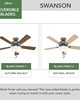 | Embrace the classic charm of the Swanson Ceiling Fan a perfect blend of traditional style and modern efficiency. Designed to complement classic interiors its elegant form exudes a timeless appeal. The fan is equipped with a 4-speed DC motor offering energy-efficient performance and quiet operation. Ideal for rooms seeking a touch of tradition without sacrificing contemporary technology the Swanson Ceiling Fan is a testament to enduring elegance and modern functionality. Make a statement in your space with Swanson where ageless design meets modern-day efficiency. Traditional 5 Autumn Walnut / Natural Wood reversible blades included Light kit features Swirled Marble A15 LED Bulb | 600lm (Non-Dim) | Longstar | 7W | KA305-01 Includes 2 7W LED Bulbs. 4 speeds controlled by pull chain. Installer's Choice® three-position mounting system allows for standard low or angled mounting Includes 2'' downrod to ensure proper distance from the ceiling and optimize air movement" Yes Limited Lifetime Motor Warranty 4-speed EcoWhisper DC Overall Height: 9.88 in Airflow: 3963 CFM Electricity Use: 12 WATTS Airflow Efficeincy: 229 CFM/WATT |