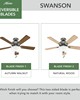 | The Swanson casual ceiling fan features easy-to-use pull chains and an LED light. As a part of the Professional Series the Swanson Collection is available in a variety of sizes finishes and light kit combinations. You can add this Hunter ceiling fan to every room in your home knowing it's wobble free whisper quiet and long lasting. Casual Traditional Transitional 5 Autumn Walnut / Natural Wood reversible blades included Light kit features Swirled Marble Inactive|A15 LED Bulb | 600lm DOE Spec (Non Dim) | Longstar | 6.5 W | K7795-02 Includes 2 6.5W LED Bulbs. 3 speeds controlled by pull chain. Installer's Choice® three-position mounting system allows for standard low or angled mounting Includes 2'' downrod to ensure proper distance from the ceiling and optimize air movement" Limited Lifetime Motor Warranty Reversible 3-speed WhisperWind® motor delivers ultra-powerful air movement with whisper-quiet performance so you get the cooling power you want without the noise you don't® Overall Height: 9.97 in Airflow: 3090 CFM Electricity Use: 30 WATTS Airflow Efficeincy: 68 CFM/WATT |