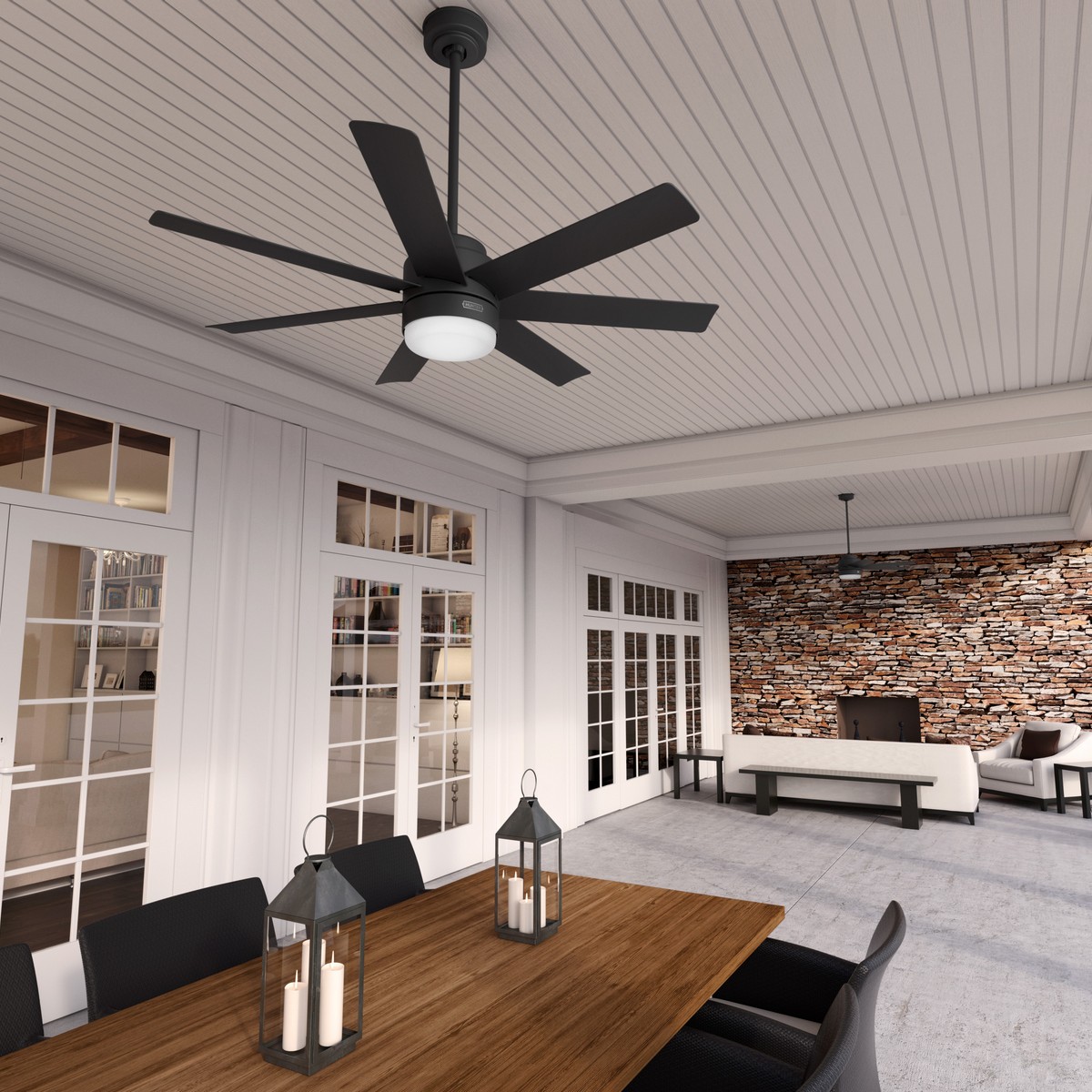 Hunter Fan Co Hunter 52 inch Brazos ENERGY STAR® Matte Black Damp Rated Ceiling Fan with LED Light Kit and Han Black