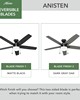 | Transform your living space with the Anisten Ceiling Fan a masterpiece of modern design. Its sleek contemporary look fits effortlessly into any modern decor offering both style and substance. The fan features a reversible 4-speed DC motor ensuring optimal airflow for comfort in all seasons. The Anisten isn't just a fan – it's a statement of refined taste where advanced functionality meets elegant form. Modern 5 Matte Black / Dark Gray Oak reversible blades included Light kit features White Lens A15 LED Bulb | 600lm (Non-Dim) | Longstar | 7W | KA305-01 Includes 2 7W LED Bulbs. 4 speeds controlled by pull chain. Installer's Choice® three-position mounting system allows for standard low or angled mounting Includes 3'' downrod to ensure proper distance from the ceiling and optimize air movement" Yes Limited Lifetime Motor Warranty Reversible 4-speed EcoWhisper DC Overall Height: 9.44 in Airflow: 4275 CFM Electricity Use: 14 WATTS Airflow Efficeincy: 220 CFM/WATT |