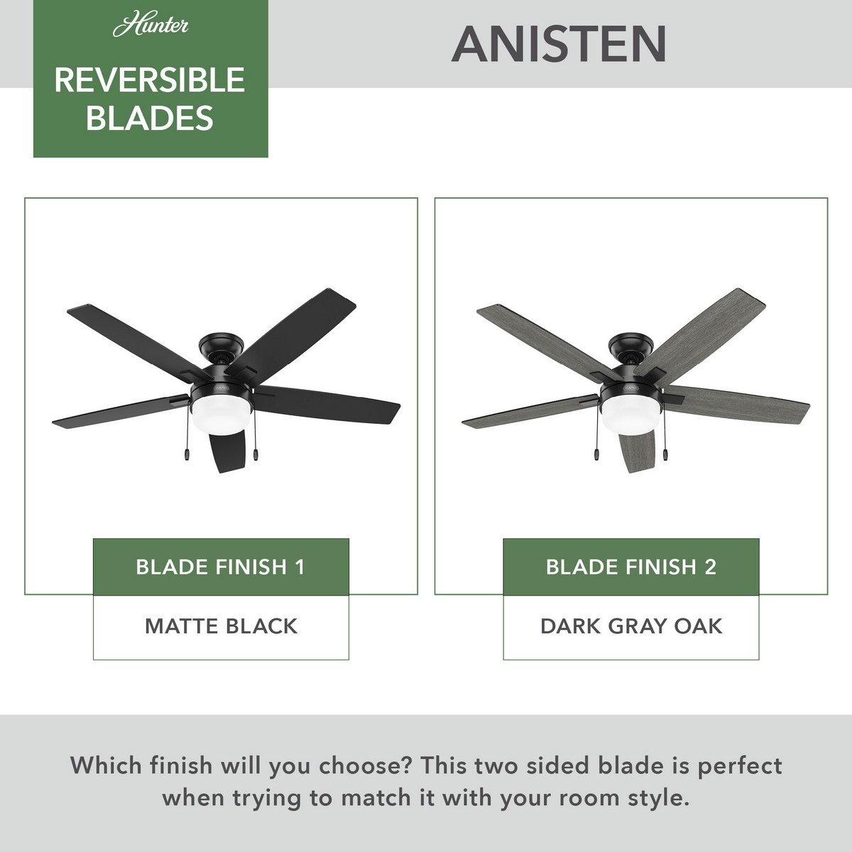 Hunter 52 inch Anisten ENERGY STAR® Matte Black Ceiling Fan with LED Light Kit and Pull Chain