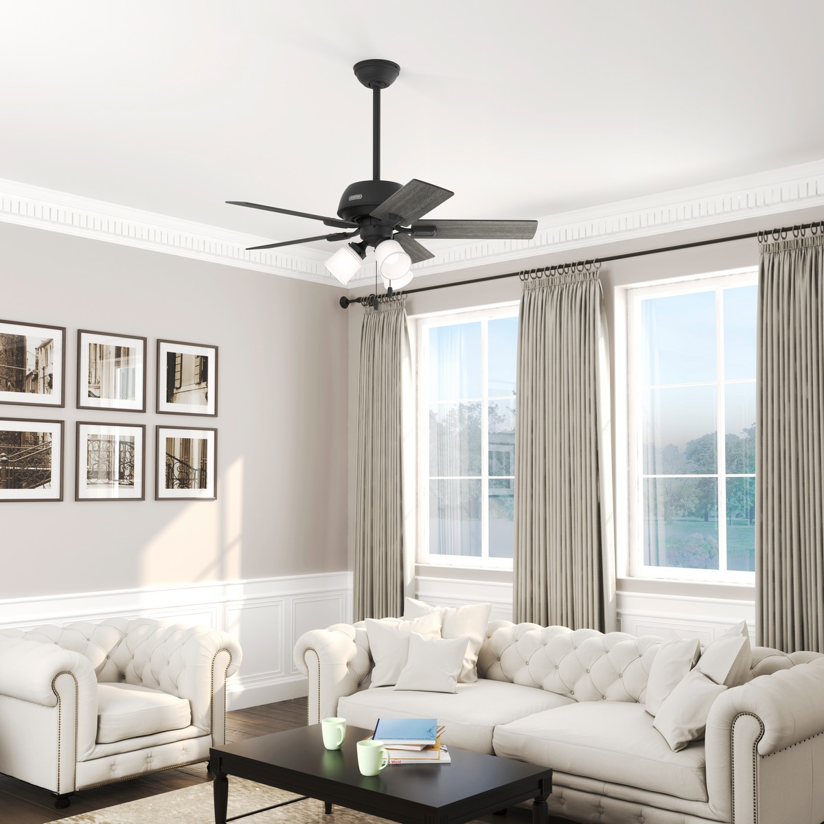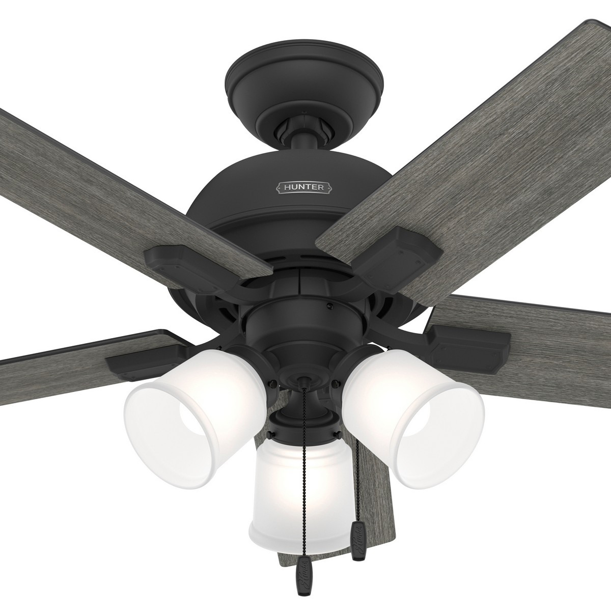 Hunter 44 inch Crystal Peak Matte Black Ceiling Fan with LED Light Kit and Pull Chain