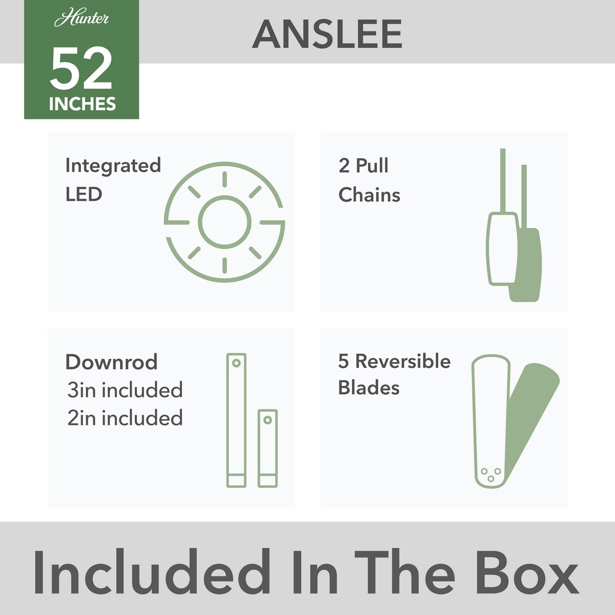Hunter 52 inch Anslee Fresh White Ceiling Fan with LED Light Kit and Pull Chain