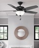 | With a 52-inch blade span the casual traditional style of the Builder Deluxe LED ceiling fan will complement standard or large rooms in your home without overpowering them. A mainstay in the Hunter® product line these ceiling fans with lights feature three-speed WhisperWind® motor technology to deliver quiet and ultra-powerful performance. Traditional Casual 5 Matte Black / Greyed Walnut reversible blades included Light kit features Painted Cased White A15 LED Bulb | 600lm (Non-Dim) | Longstar | 7W | KA305-01 Includes 2 7W LED Bulbs. 3 speeds controlled by pull chain. Installer's Choice® three-position mounting system allows for standard low or angled mounting Includes 3'' downrod to ensure proper distance from the ceiling and optimize air movement" Limited Lifetime Motor Warranty Reversible 3-speed WhisperWind® motor delivers ultra-powerful air movement with whisper-quiet performance so you get the cooling power you want without the noise you don't® Overall Height: 11.04 in Airflow: 4520 CFM Electricity Use: 38 WATTS Airflow Efficeincy: 82 CFM/WATT |
