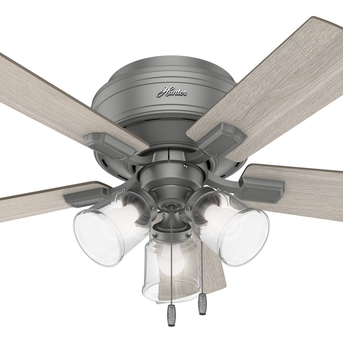 Hunter 42 inch Crestfield Matte Silver Low Profile Ceiling Fan with LED Light Kit and Pull Chain