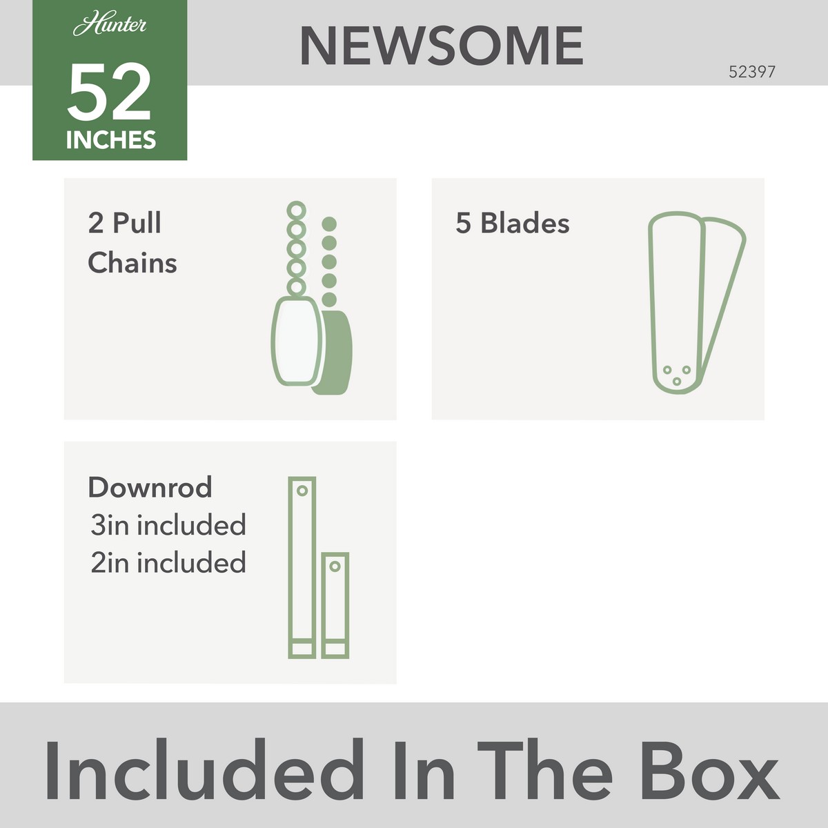 Hunter 52 inch Newsome Matte Black Ceiling Fan and Pull Chain