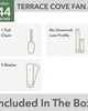 | An outdoor classic meets a unique form. The 44-inch Terrace Cove brings refreshing design to outdoor ceiling fans with its sleek blades and one-of-a-kind housing. Between its modern design and SureSpeed® technology the Terrace Cove keeps your patio cool quiet and stylish. Perfect for small areas and low ceilings this fan adds a finishing flair to your favorite space. Casual Modern Industrial 5 Matte Black blades included 3 speeds controlled by pull chain. Specially designed low-profile housing fits flush to the ceiling making it ideal for use in rooms with low ceilings less than 9' " Limited Lifetime Motor Warranty Reversible 3-speed WhisperWind® motor delivers ultra-powerful air movement with whisper-quiet performance so you get the cooling power you want without the noise you don't® Overall Height: 10.45 in Airflow: 4196 CFM Electricity Use: 37 WATTS Airflow Efficeincy: 75 CFM/WATT |