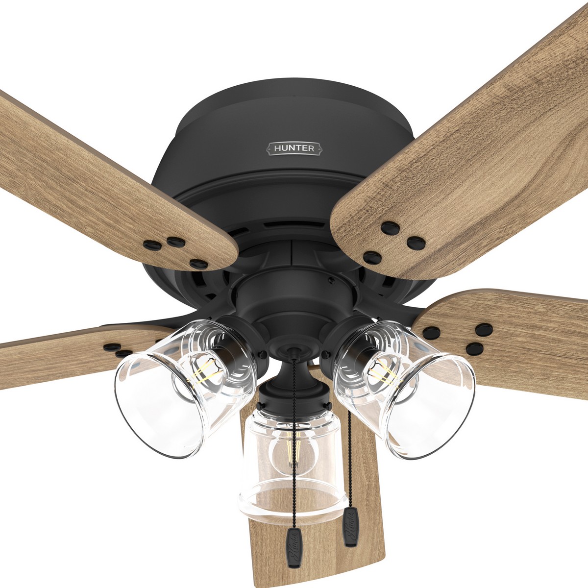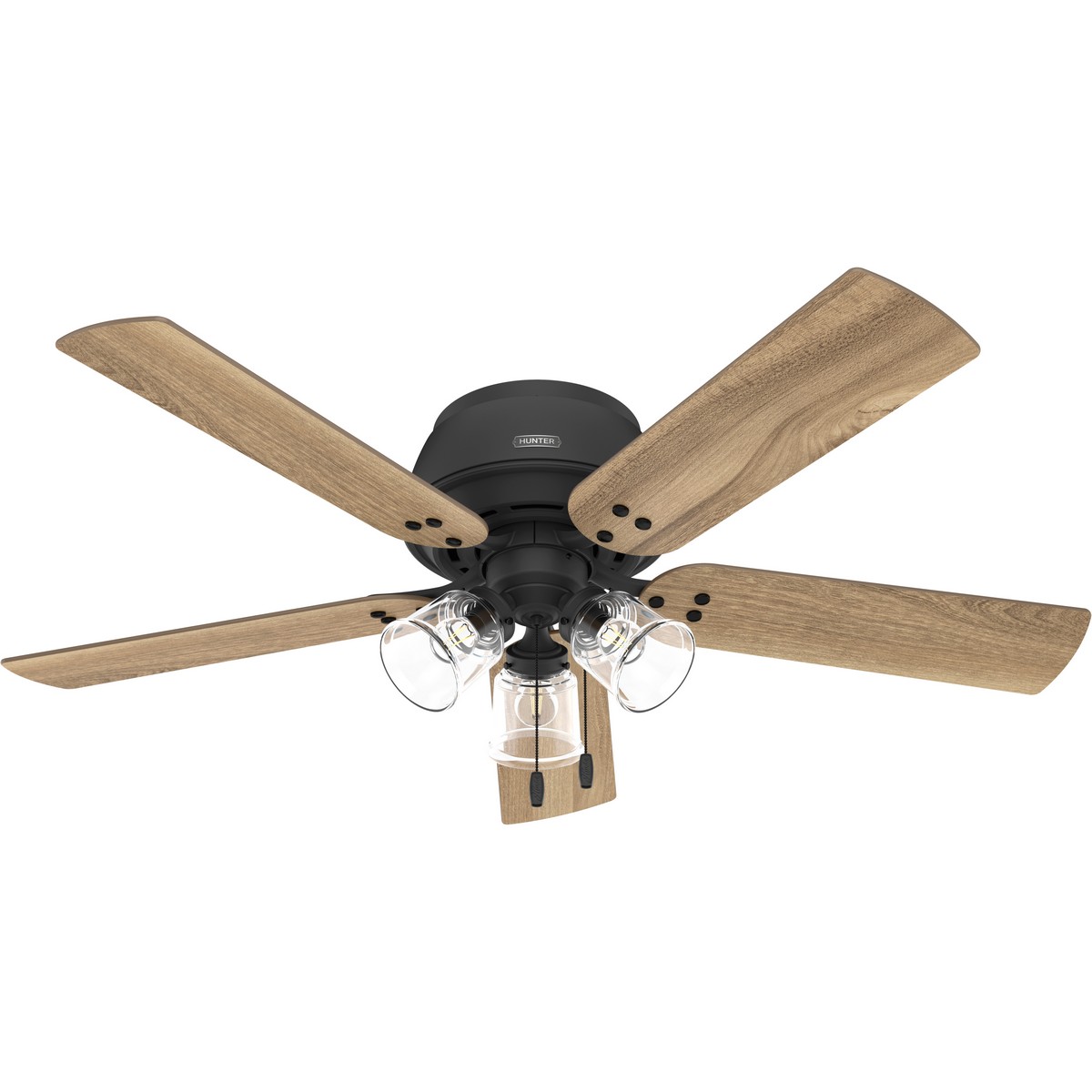 Hunter 52 inch Shady Grove Matte Black Low Profile Ceiling Fan with LED Light Kit and Pull Chain