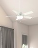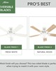 | Available in multiple finishes and boasting a 52 inch blade span the Pro's Best ceiling fan adds a touch of traditional style that perfectly complements the classic aesthetics of your home. This fan is powered by a WhisperWind® DC motor which is reversible and features three speeds ensuring ultra-powerful performance with minimal noise. Now enhanced with our 6-speed DC motor integration the Pro's Best ceiling fan delivers the ultimate in efficient and quiet operation. Experience the reliability of one of the best brands of ceiling fans on the market. Traditional 5 Fresh White / Natural Wood reversible blades included Light kit features Painted Cased White A19 LED| Non Dim Estar Enclosed | 9W | K4870-04 Includes 2 9W LED Bulbs. 6 speeds controlled by pull chain. Installer's Choice® three-position mounting system allows for standard low or angled mounting Includes 3'' downrod to ensure proper distance from the ceiling and optimize air movement" Yes Limited Lifetime Motor Warranty Reversible 6-speed EcoWhisper DC Overall Height: 11.11 in Airflow: 4646 CFM Electricity Use: 17 WATTS Airflow Efficeincy: 184 CFM/WATT |