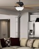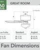 | Featuring high-end finishes and a hint of the old west the Reveille rustic ceiling fan is the perfect accent for your western home decor style. This fan offers an option to install with or without the light kit which includes dimmable energy-efficient LED bulbs that provide the perfect amount of light through cased white glass. Ideal for your large open-concept living room the Reveille's 60-inch blades power a reversible three-speed WhisperWind® motor to deliver ultra-powerful air movement with a whisper-quiet performance so you get the cooling power you want without the noise. Casual Transitional 5 Golden Maple / Stone reversible blades included Light kit features Painted Cased White A19 LED Bulb | DIM EStar | 9 W | K4870-02 Includes 3 9W LED Bulbs. You will love the dimmable light feature. 3 speeds controlled by pull chain. Installer's Choice® three-position mounting system allows for standard low or angled mounting Includes 3'' downrod to ensure proper distance from the ceiling and optimize air movement" Limited Lifetime Motor Warranty Reversible 3-speed WhisperWind® motor delivers ultra-powerful air movement with whisper-quiet performance so you get the cooling power you want without the noise you don't® Overall Height: 11.84 in Airflow: 5422 CFM Electricity Use: 43 WATTS Airflow Efficeincy: 85 CFM/WATT |