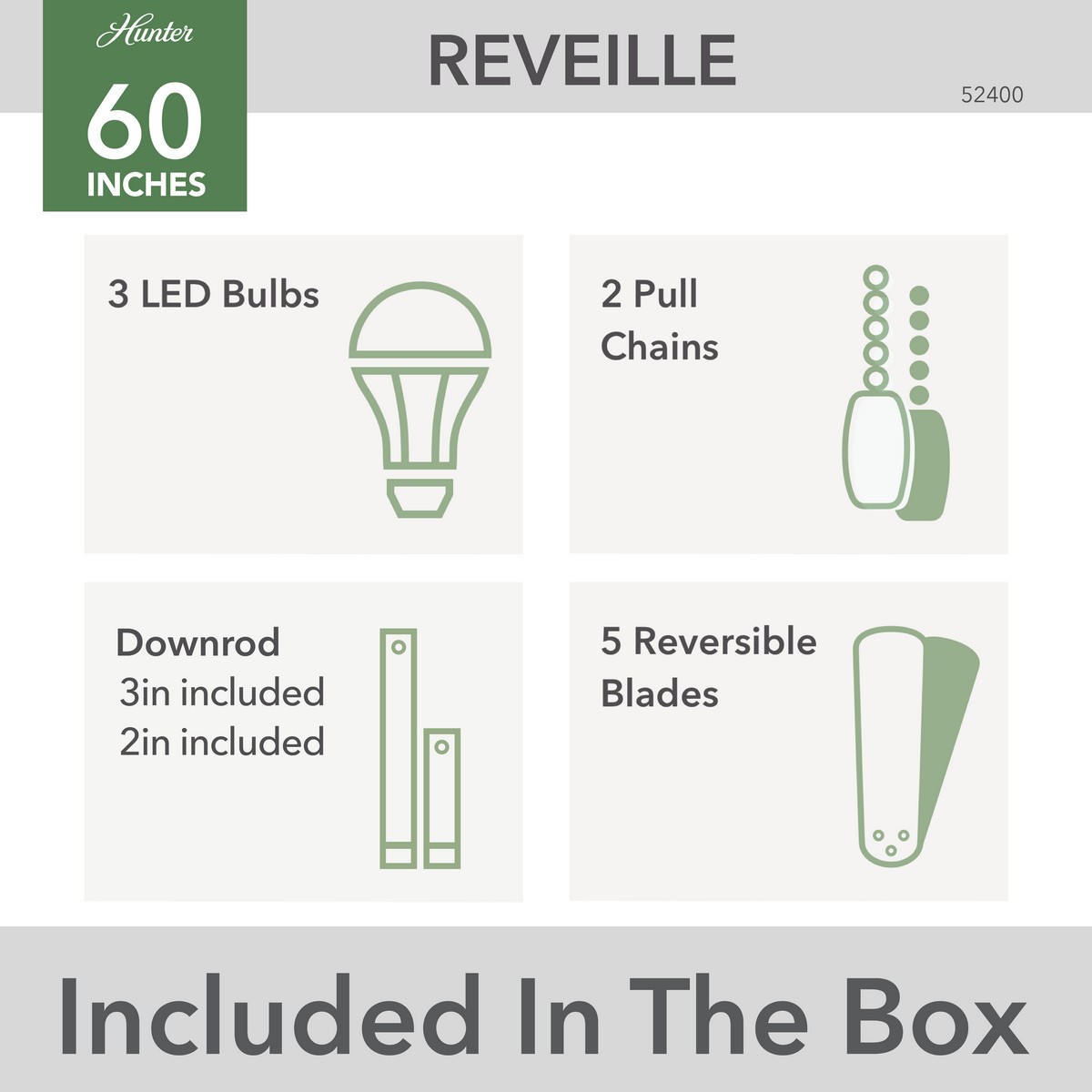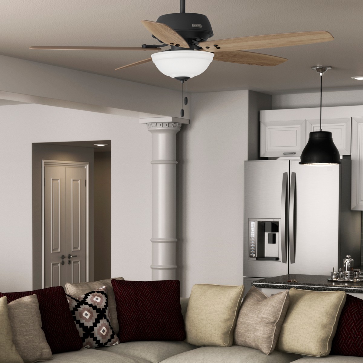 Hunter 60 inch Reveille Matte Black Ceiling Fan with LED Light Kit and Pull Chain