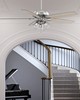 | The Dondra ceiling fan is a great addition to a formal or transition space. Dress up your great room or bonus room and show off your sense of style. The reversible 3-speed WhisperWind® motor delivers ultra-powerful air movement with whisper-quiet performance so you get the cooling power you want without the noise you don't™. Mix and match with lighting from our many transitional design collections we have everything you need to finish your decor with style. Formal Transitional 5 Light Gray Oak blades included Light kit features Clear A15 LED Bulb Clear | KA714-01 Includes 3 4.5W LED Bulbs. You will love the dimmable light feature. 3 speeds controlled by pull chain. Installer's Choice® three-position mounting system allows for standard low or angled mounting Includes 3'' downrod to ensure proper distance from the ceiling and optimize air movement" Yes Limited Lifetime Motor Warranty Reversible 3-speed WhisperWind® motor delivers ultra-powerful air movement with whisper-quiet performance so you get the cooling power you want without the noise you don't® Overall Height: 10.85 in Airflow: 6136 CFM Electricity Use: 47 WATTS Airflow Efficeincy: 82 CFM/WATT |