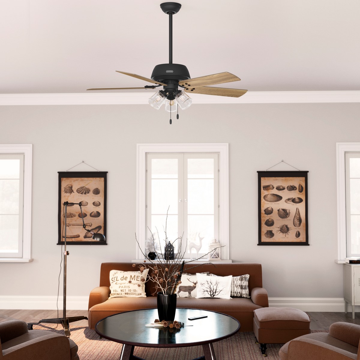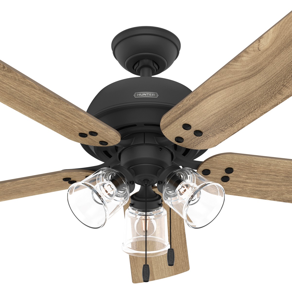 Hunter 52 inch Shady Grove Matte Black Ceiling Fan with LED Light Kit and Pull Chain