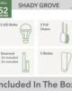 | Add some contemporary style to your bedroom with the Shady Grove ceiling fan. The casual transitional style features blades and a light kit in multiple finishes. An energy-efficient LED bulb included in the three lights can be installed in any fixture setting. The technology of our reversible 3-speed WhisperWind® motor delivers ultra-powerful air movement with whisper-quiet performance so you get the cooling power you want without the noise you don't™. Casual Transitional 5 Golden Maple / Natural Oak reversible blades included Light kit features Clear A15 LED Bulb Clear | KA714-01 Includes 3 4.5W LED Bulbs. You will love the dimmable light feature. 3 speeds controlled by pull chain. Installer's Choice® two-position mounting system allows for standard or angled mounting Includes 3'' downrod to ensure proper distance from the ceiling and optimize air movement" Limited Lifetime Motor Warranty Reversible 3-speed WhisperWind® motor delivers ultra-powerful air movement with whisper-quiet performance so you get the cooling power you want without the noise you don't® Overall Height: 11.78 in Airflow: 4791 CFM Electricity Use: 44 WATTS Airflow Efficeincy: 74 CFM/WATT |