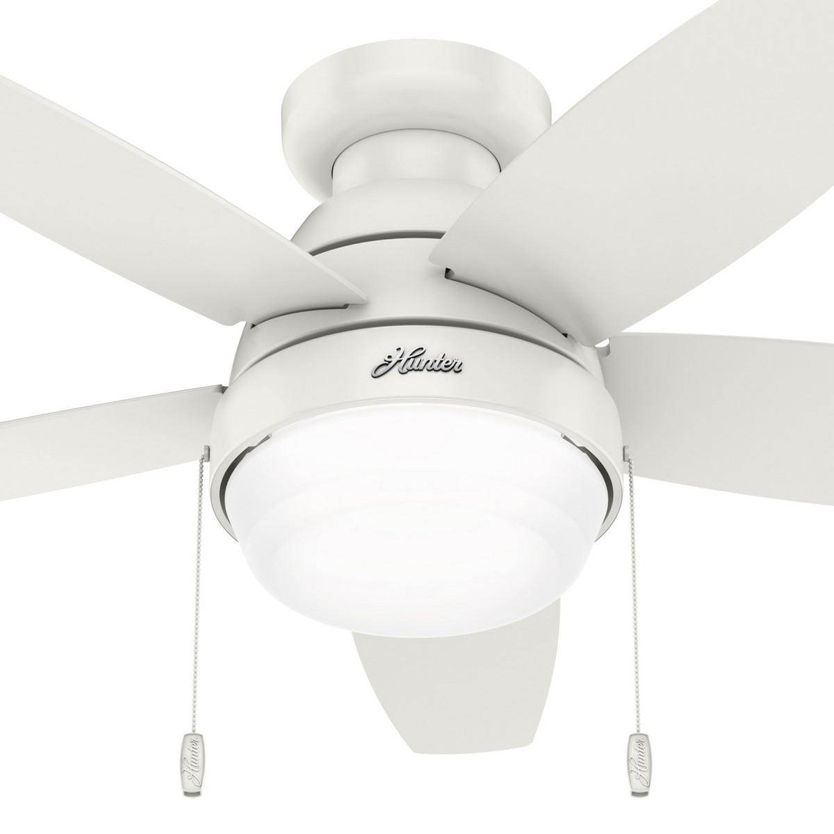 Hunter 44 inch Lilliana Fresh White Low Profile Ceiling Fan with LED Light Kit and Pull Chain