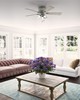 | Subtle farmhouse and vintage details are seen throughout the Crestfield rustic ceiling fan particularly with the vintage-inspired blade irons and the rustic finishes on the 52-inch reversible blades. The Crestfield ceiling fan includes snap-on blades for easy installation. Featuring a three-speed motor and energy-efficient LED light bulbs the Crestfield collection comes in a variety of sizes and finishes to allow you to customize the look of your indoor spaces while maintaining a consistent style throughout your home. Casual Farmhouse 5 Light Gray Oak / Warm Grey Oak reversible blades included Light kit features Clear A15 LED Bulb | 600lm (Non-Dim) | Longstar | 7W | KA305-01 Includes 3 9W LED Bulbs. 3 speeds controlled by pull chain. Specially designed low-profile housing fits flush to the ceiling making it ideal for use in rooms with low ceilings less than 9' " Limited Lifetime Motor Warranty Reversible 3-speed WhisperWind® motor delivers ultra-powerful air movement with whisper-quiet performance so you get the cooling power you want without the noise you don't® Overall Height: 0 in Airflow: 4784 CFM Electricity Use: 47 WATTS Airflow Efficeincy: 67 CFM/WATT |