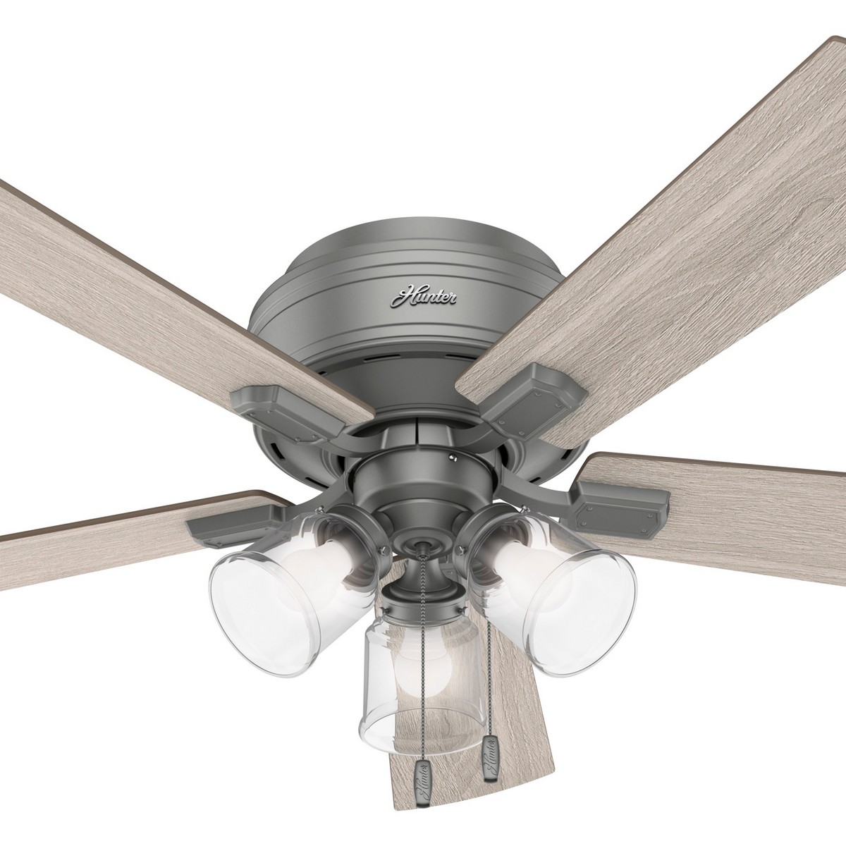 Hunter 52 inch Crestfield Matte Silver Low Profile Ceiling Fan with LED Light Kit and Pull Chain