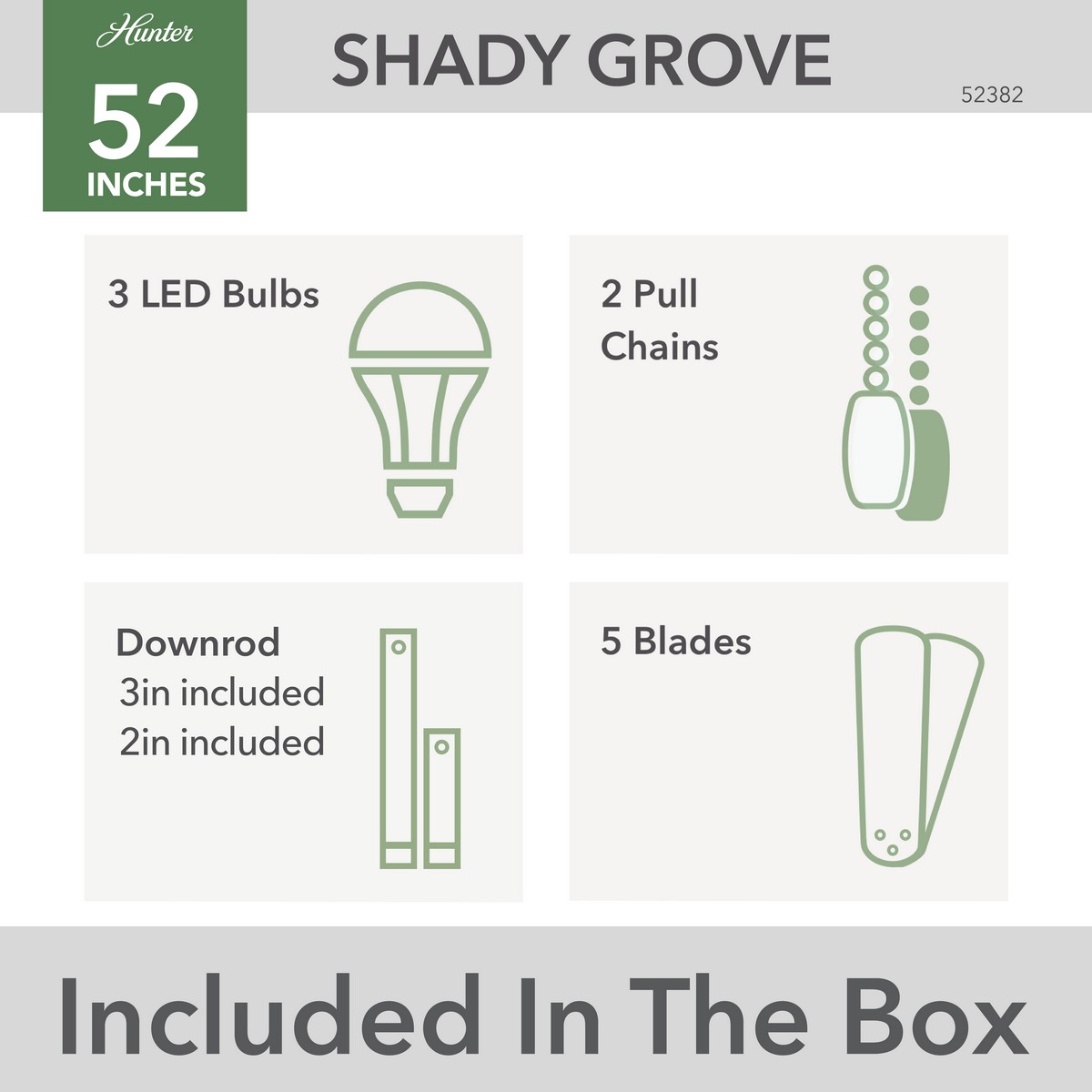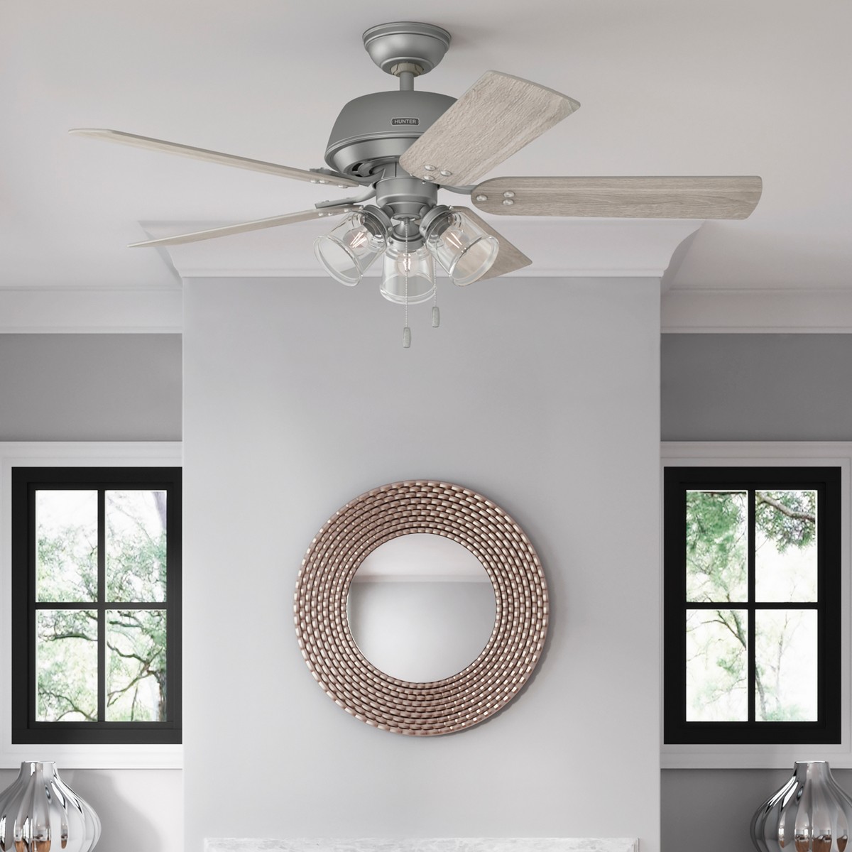 Hunter 52 inch Shady Grove Matte Silver Ceiling Fan with LED Light Kit and Pull Chain