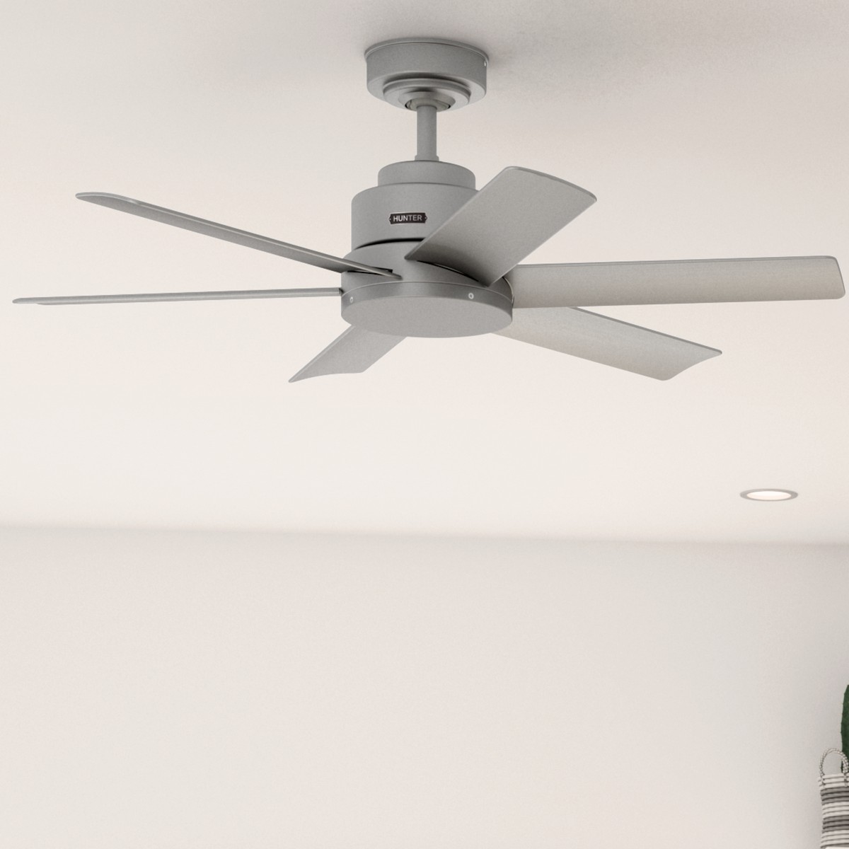 Hunter 44 inch Kennicott Matte Silver Damp Rated Ceiling Fan and Wall Control