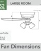 | The Hartland chandelier-inspired ceiling fan's clear-seeded glass and included Edison LED light bulbs create a stunning look in large casual spaces. This large ceiling fan is designed to fit flush in rooms with ceilings less than 9 feet high. Use the Indigo Blue finish to add a subtle pop of color or complement other fixtures in your space with the Noble Bronze or Matte Silver finish. Create a cohesive look in your space by pairing the Hartland ceiling fan with the coordinating light fixtures in its collection. Casual Farmhouse Rustic Traditional Transitional Chandelier 5 Light Gray Oak blades included Light kit features Clear Seeded T12 Edison | LED Bulb | 3.5 W | K5952 Includes 3 3.5W LED Bulbs. You will love the dimmable light feature. 3 speeds controlled by pull chain. Specially designed low-profile housing fits flush to the ceiling making it ideal for use in rooms with low ceilings less than 9' " Limited Lifetime Motor Warranty Reversible 3-speed WhisperWind® motor delivers ultra-powerful air movement with whisper-quiet performance so you get the cooling power you want without the noise you don't® Overall Height: 8.53 in Airflow: 5361 CFM Electricity Use: 44 WATTS Airflow Efficeincy: 83 CFM/WATT |