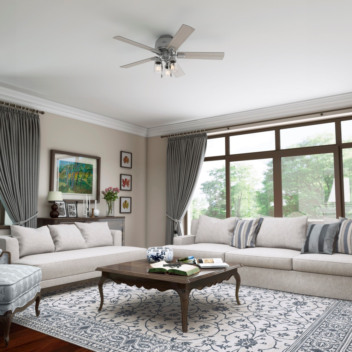 Hunter 52 inch Hartland Matte Silver Low Profile Ceiling Fan with LED Light Kit and Pull Chain