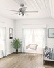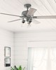 | The Hartland chandelier-inspired ceiling fan has a revised classic look that looks beautiful in casual indoor spaces. The clear seeded glass and included Edison LED light bulbs create a stunning look. Add a subtle pop of color with the Indigo Blue fan or complement other fixtures and accents in your farmhouse-style room with the Noble Bronze or Matte Silver finish. Create a cohesive look in your space by pairing the Hartland ceiling fan with the coordinating light fixtures in its collection. Casual Farmhouse Traditional Rustic Chandelier 5 Light Gray Oak blades included Light kit features Clear Seeded T12 Edison | LED Bulb | 3.5 W | K5952 Includes 3 3.5W LED Bulbs. You will love the dimmable light feature. 3 speeds controlled by Handheld Remote. Installer's Choice® three-position mounting system allows for standard low or angled mounting Includes 3'' downrod to ensure proper distance from the ceiling and optimize air movement" Limited Lifetime Motor Warranty Reversible 3-speed WhisperWind® motor delivers ultra-powerful air movement with whisper-quiet performance so you get the cooling power you want without the noise you don't® Overall Height: 11.46 in Airflow: 5634 CFM Electricity Use: 45 WATTS Airflow Efficeincy: 84 CFM/WATT |