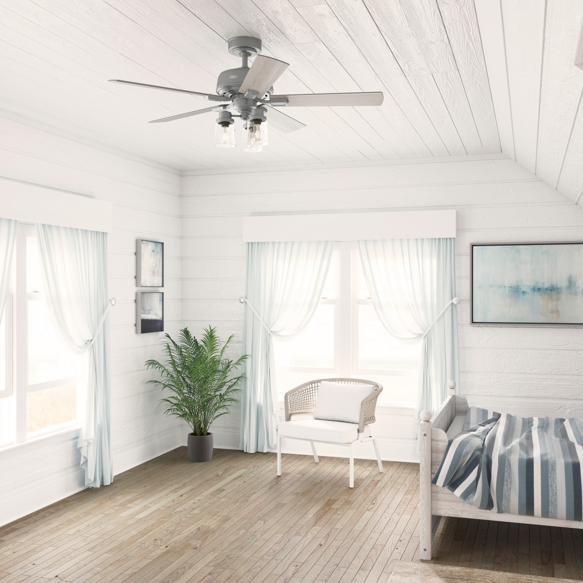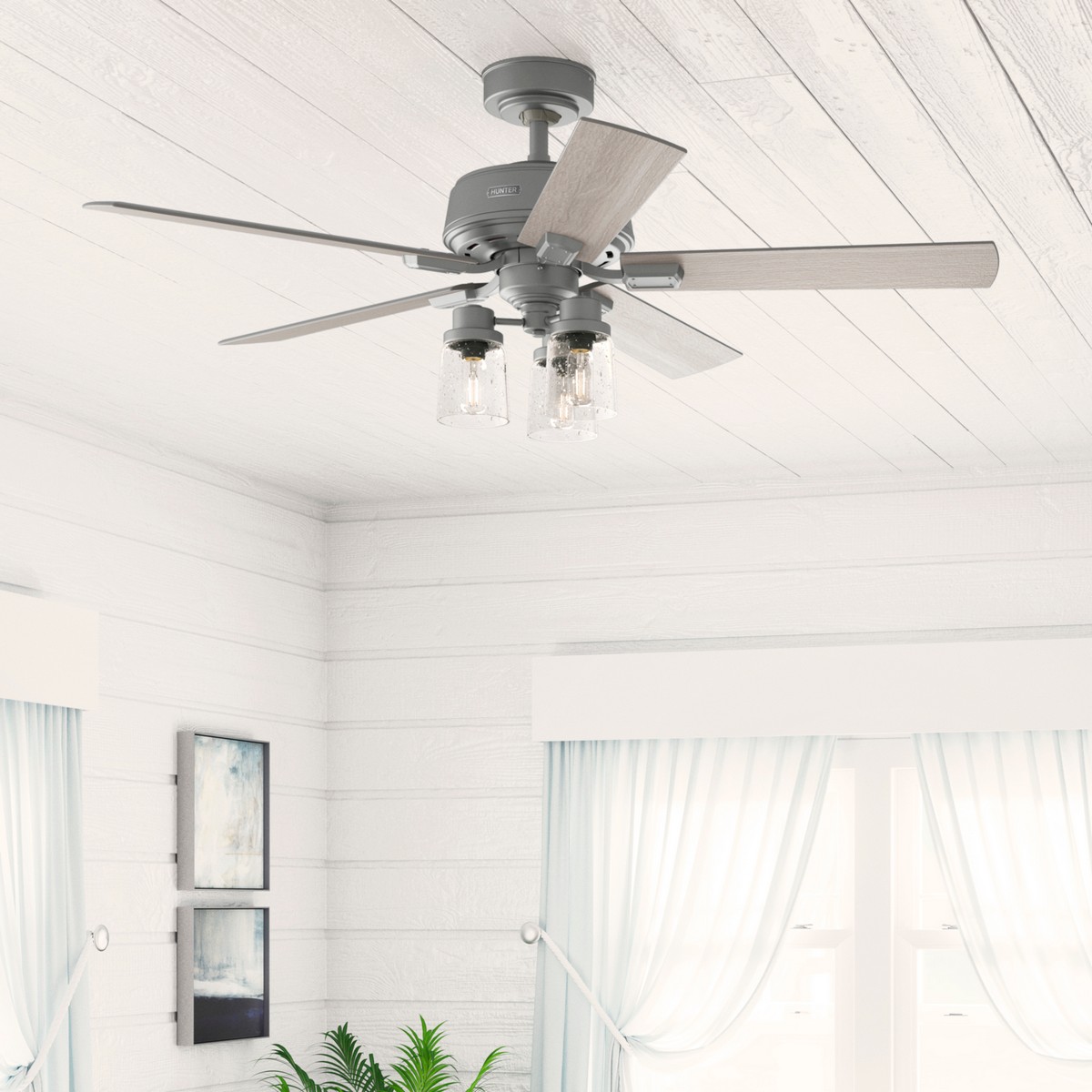 Hunter 52 inch Hartland Matte Silver Ceiling Fan with LED Light Kit and Handheld Remote