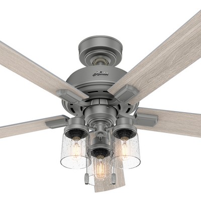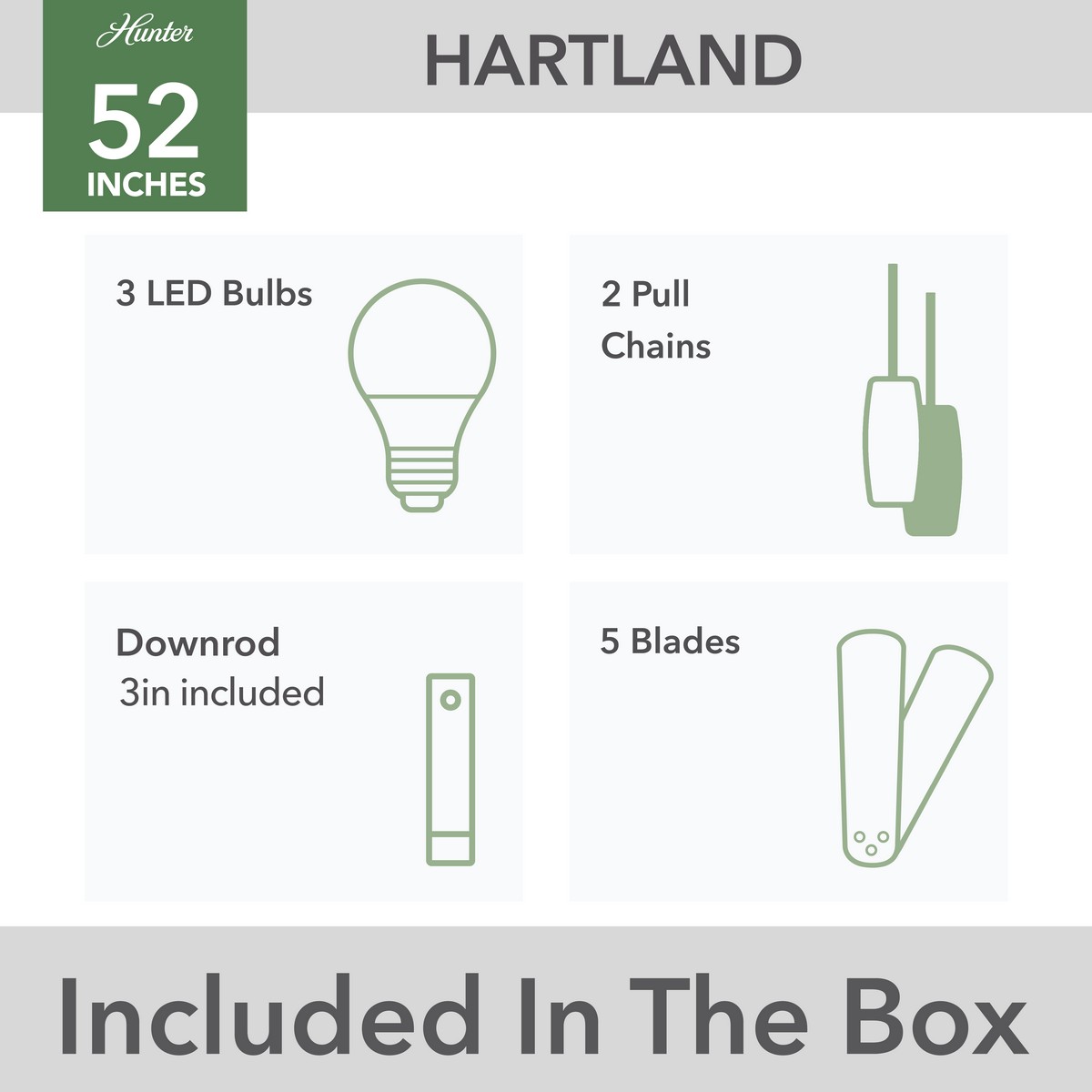 Hunter 52 inch Hartland Matte Silver Ceiling Fan with LED Light Kit and Pull Chain