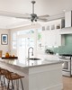 | The Hartland chandelier-inspired ceiling fan has a revised classic look that looks beautiful in casual indoor spaces. The clear seeded glass and included Edison LED light bulbs create a stunning look. Add a subtle pop of color with the Indigo Blue fan or complement other fixtures and accents in your farmhouse-style room with the Noble Bronze or Matte Silver finish. Create a cohesive look in your space by pairing the Hartland ceiling fan with the coordinating light fixtures in its collection. Casual Farmhouse Rustic Transitional Traditional Chandelier 5 Light Gray Oak blades included Light kit features Clear Seeded T12 Edison | LED Bulb | 3.5 W | K5952 Includes 3 3.5W LED Bulbs. You will love the dimmable light feature. 3 speeds controlled by pull chain. Installer's Choice® three-position mounting system allows for standard low or angled mounting Includes 3'' downrod to ensure proper distance from the ceiling and optimize air movement" Limited Lifetime Motor Warranty Reversible 3-speed WhisperWind® motor delivers ultra-powerful air movement with whisper-quiet performance so you get the cooling power you want without the noise you don't® Overall Height: 11.53 in Airflow: 5863 CFM Electricity Use: 44 WATTS Airflow Efficeincy: 90 CFM/WATT |