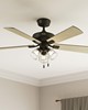 | Experience the charm of farmhouse-inspired style in your home by incorporating the Crestfield ceiling fan. With its rustic appeal and effortless installation process using our HunterExpress® Easy 1-2-3 Installation this fan is designed to elevate any interior. The inclusion of clear glass shades adds a touch of elegance to its overall aesthetic. Discover the Crestfield ceiling fan and transform your living space with flair. Casual 5 Bleached Grey Pine / Greyed Walnut reversible blades included Light kit features Clear A15 LED Bulb | 600lm DOE Spec | Long Star | 6.5 W | K7795-01 Includes 3 7W LED Bulbs. You will love the dimmable light feature. 3 speeds controlled by pull chain. Installer's Choice® three-position mounting system allows for standard low or angled mounting Includes 3.5'' downrod to ensure proper distance from the ceiling and optimize air movement" Limited Lifetime Motor Warranty Reversible 3-speed WhisperWind® motor delivers ultra-powerful air movement with whisper-quiet performance so you get the cooling power you want without the noise you don't® Overall Height: 12.78 in Airflow: 5039 CFM Electricity Use: 45 WATTS Airflow Efficeincy: 74 CFM/WATT |