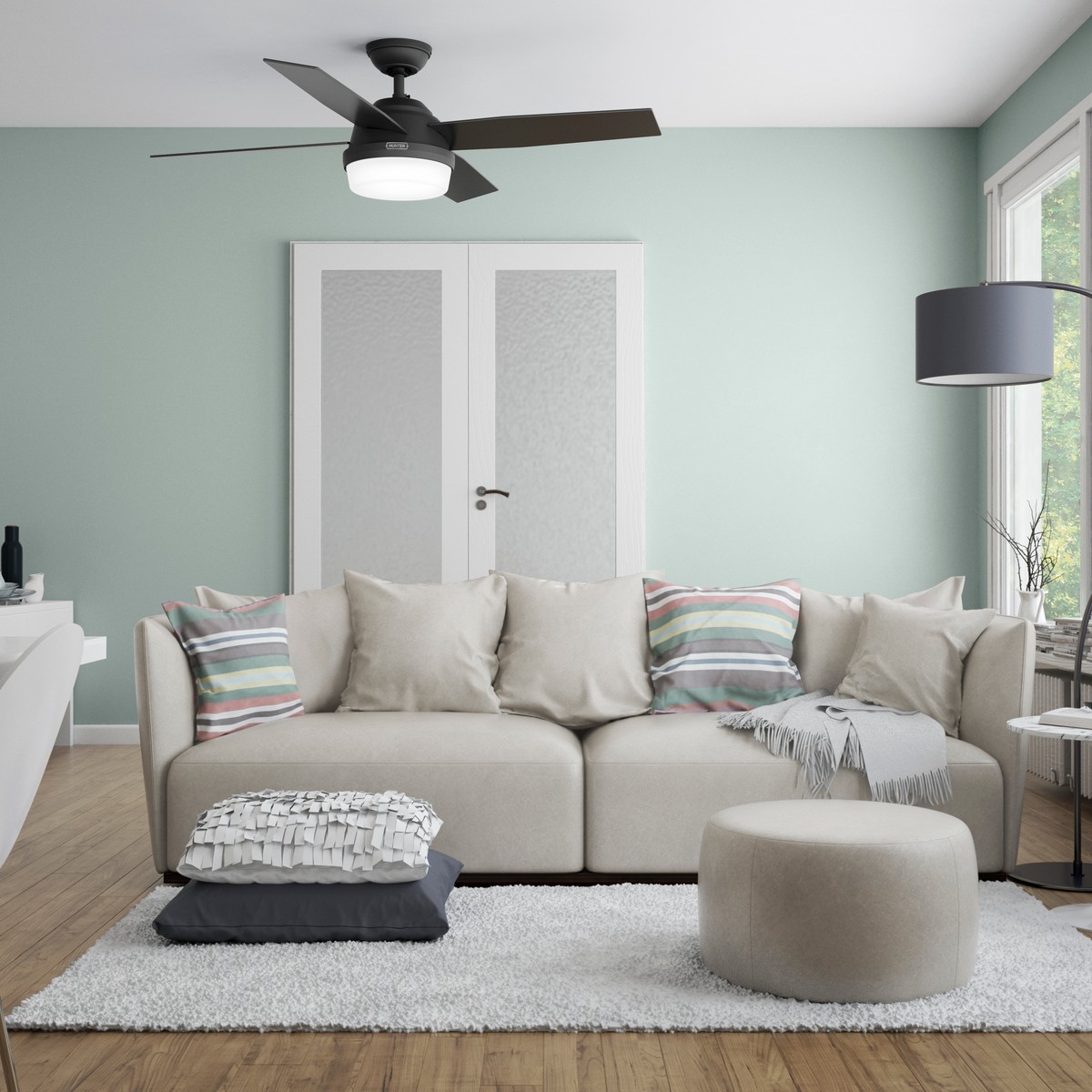 Hunter 52 inch Dempsey Matte Black Ceiling Fan with LED Light Kit and Handheld Remote
