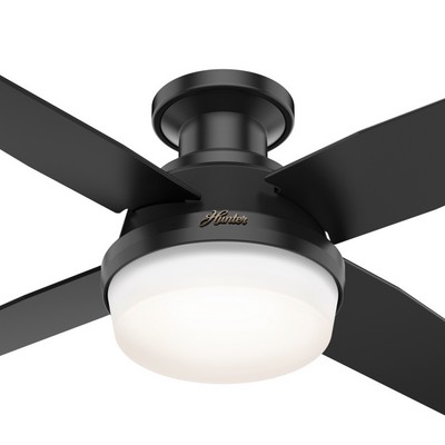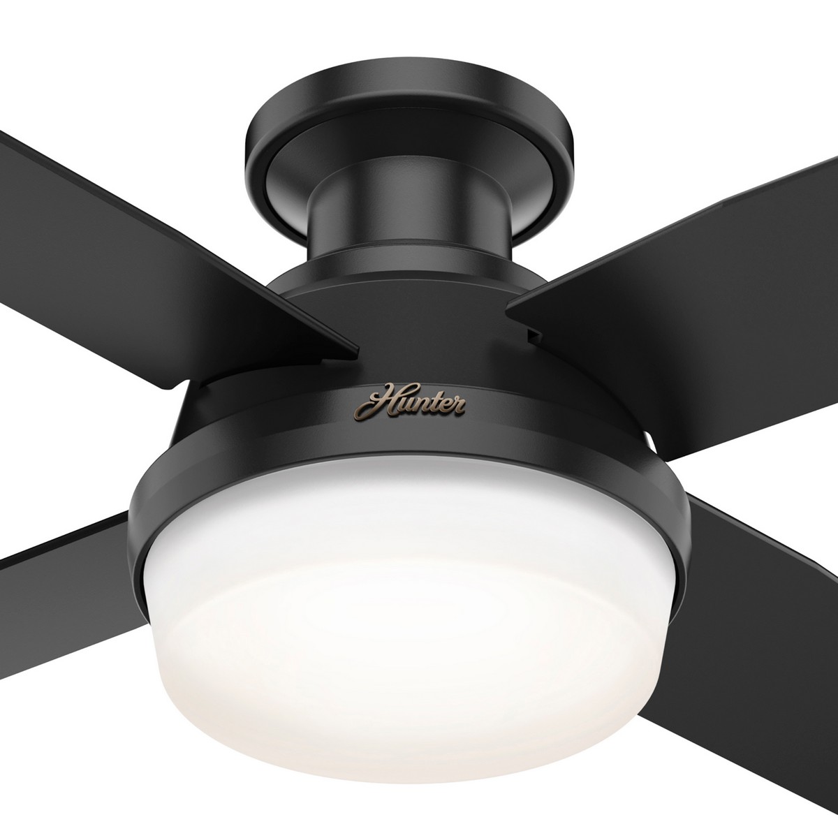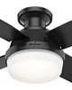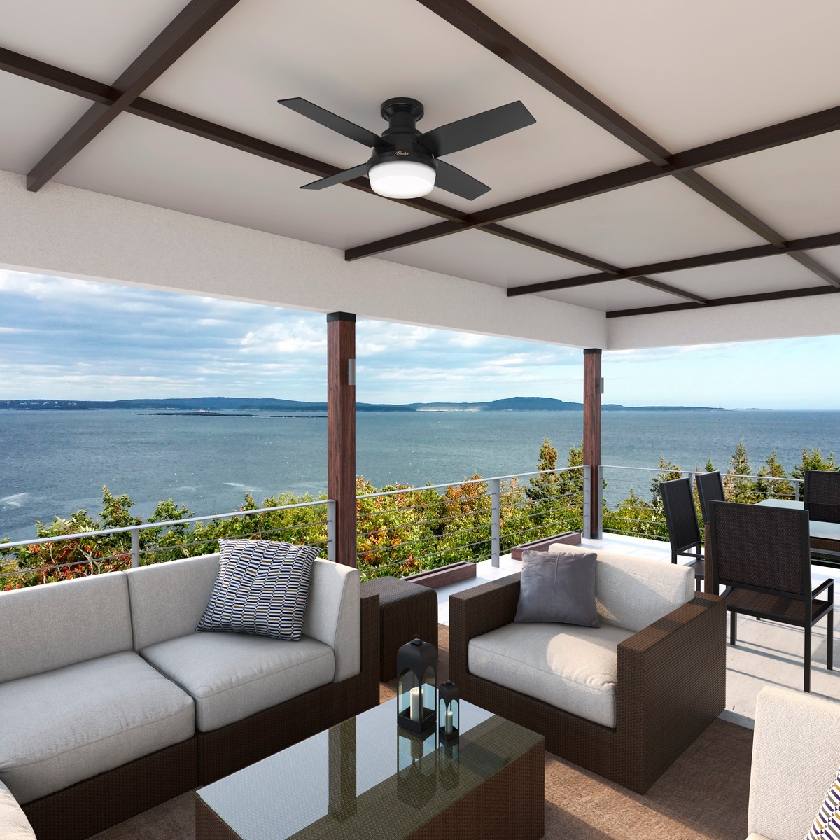 Hunter 44 inch Dempsey Matte Black Low Profile Damp Rated Ceiling Fan with LED Light Kit and Handhel