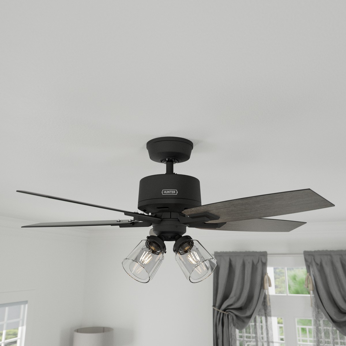 Hunter 44 inch Gatlinburg HunterExpress Matte Black Ceiling Fan with LED Light Kit and Handheld Remo