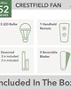 | Add a touch of farmhouse flair to any interior living space with the Crestfield ceiling fan. Complete with glass-domed LED lighting and remote control for easy operation the Crestfield achieves the perfect blend of rustic and casual. As a bonus this ceiling fan has the cooling capacity to handle your home's largest spaces. Mix and match with other fans and lighting in our collections to update all your rooms. Casual Farmhouse Transitional Rustic 5 Light Gray Oak / Warm Grey Oak reversible blades included Light kit features Clear A15 LED Bulb | 600lm DOE Spec | Long Star | 6.5 W | K7795-01 Includes 3 7W LED Bulbs. You will love the dimmable light feature. 3 speeds controlled by Handheld Remote. Installer's Choice® three-position mounting system allows for standard low or angled mounting Includes 3'' downrod to ensure proper distance from the ceiling and optimize air movement" Limited Lifetime Motor Warranty Reversible 3-speed WhisperWind® motor delivers ultra-powerful air movement with whisper-quiet performance so you get the cooling power you want without the noise you don't® Overall Height: 11.62 in Airflow: 5279 CFM Electricity Use: 47 WATTS Airflow Efficeincy: 74 CFM/WATT |