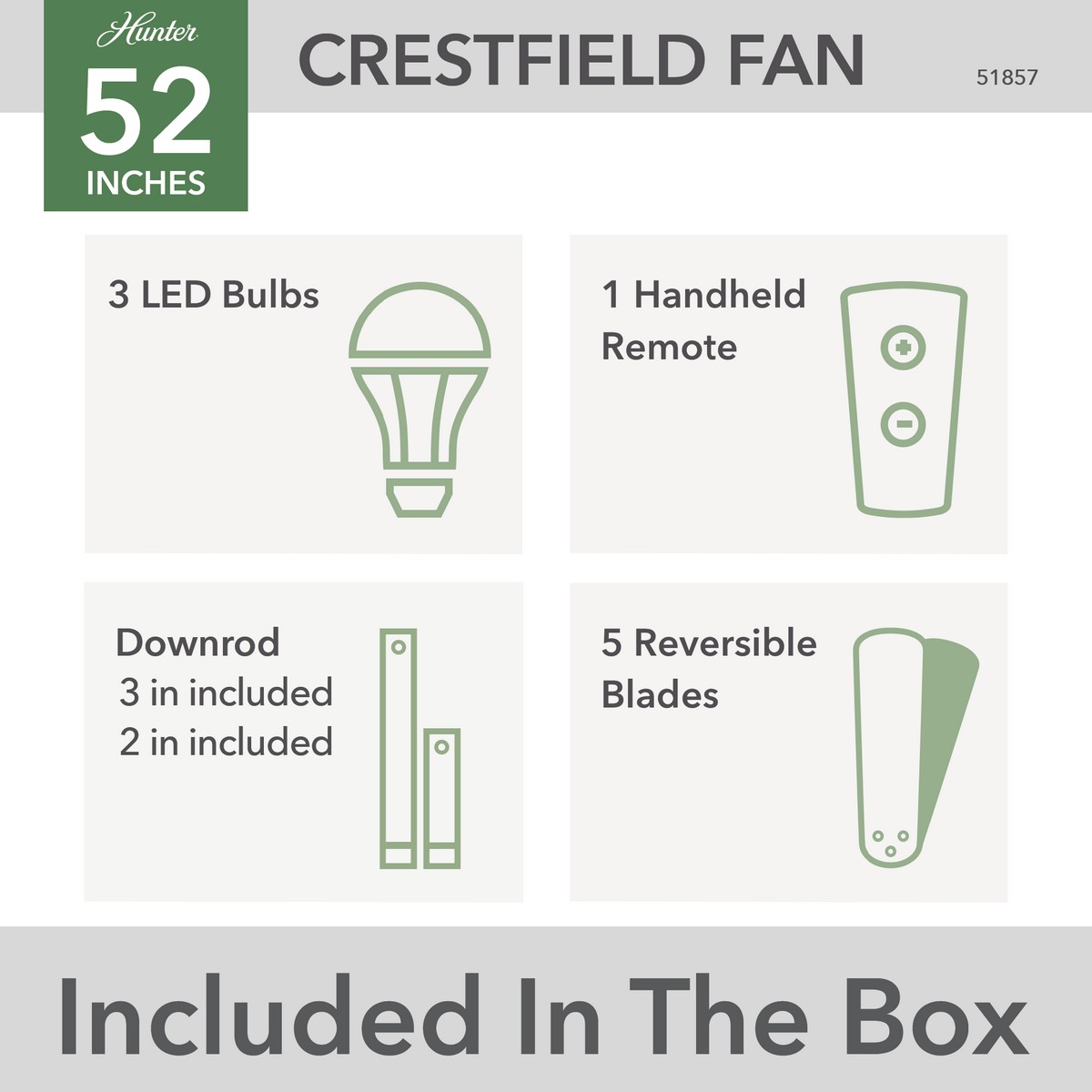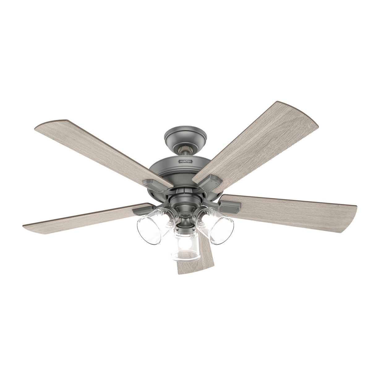 Hunter 52 inch Crestfield Matte Silver Ceiling Fan with LED Light Kit and Handheld Remote