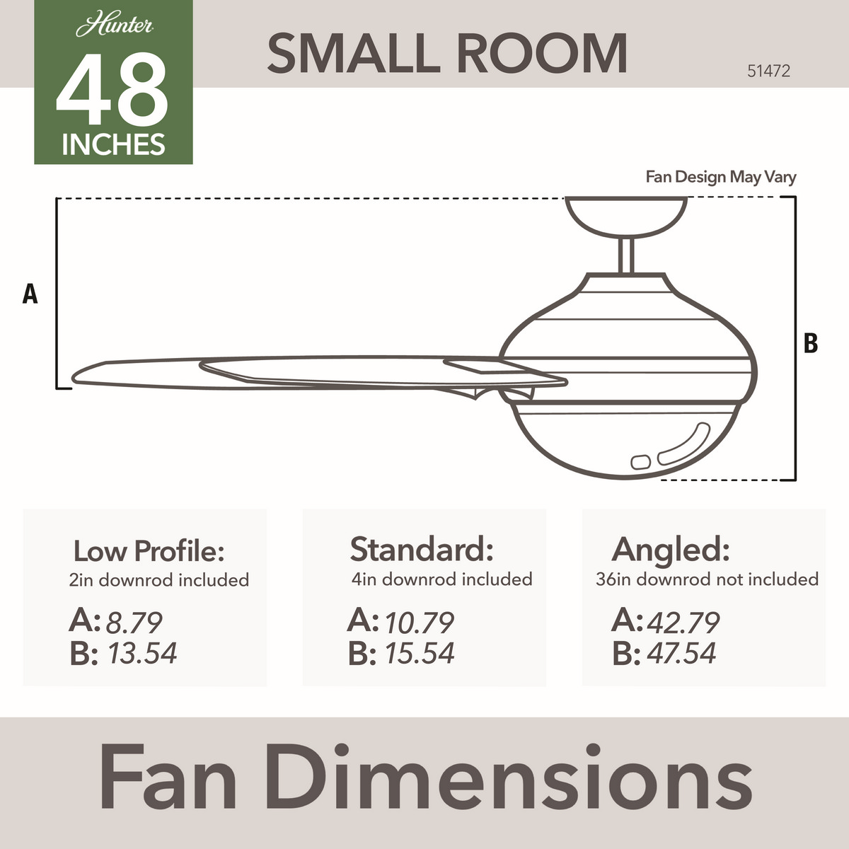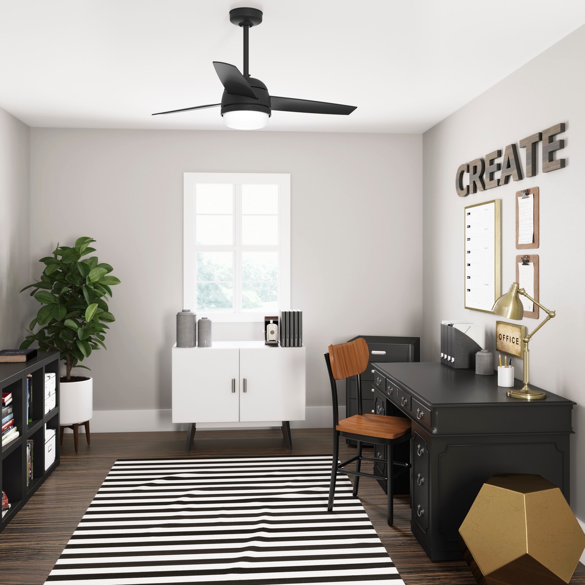 Hunter 48 inch Midtown Matte Black Ceiling Fan with LED Light Kit and Handheld Remote